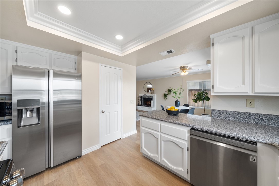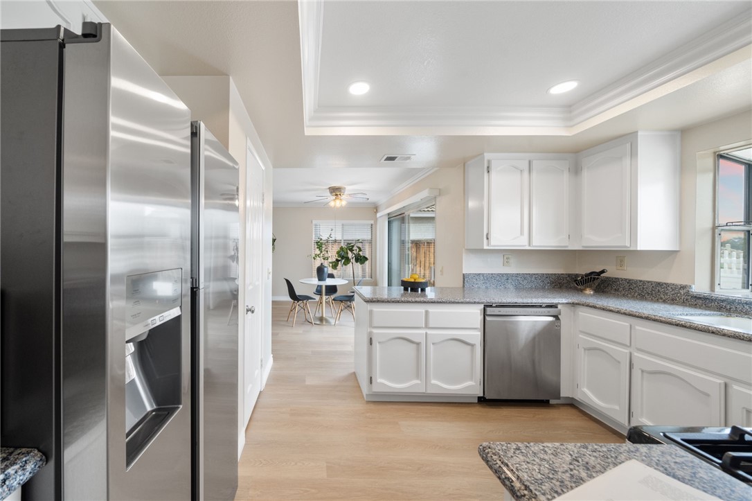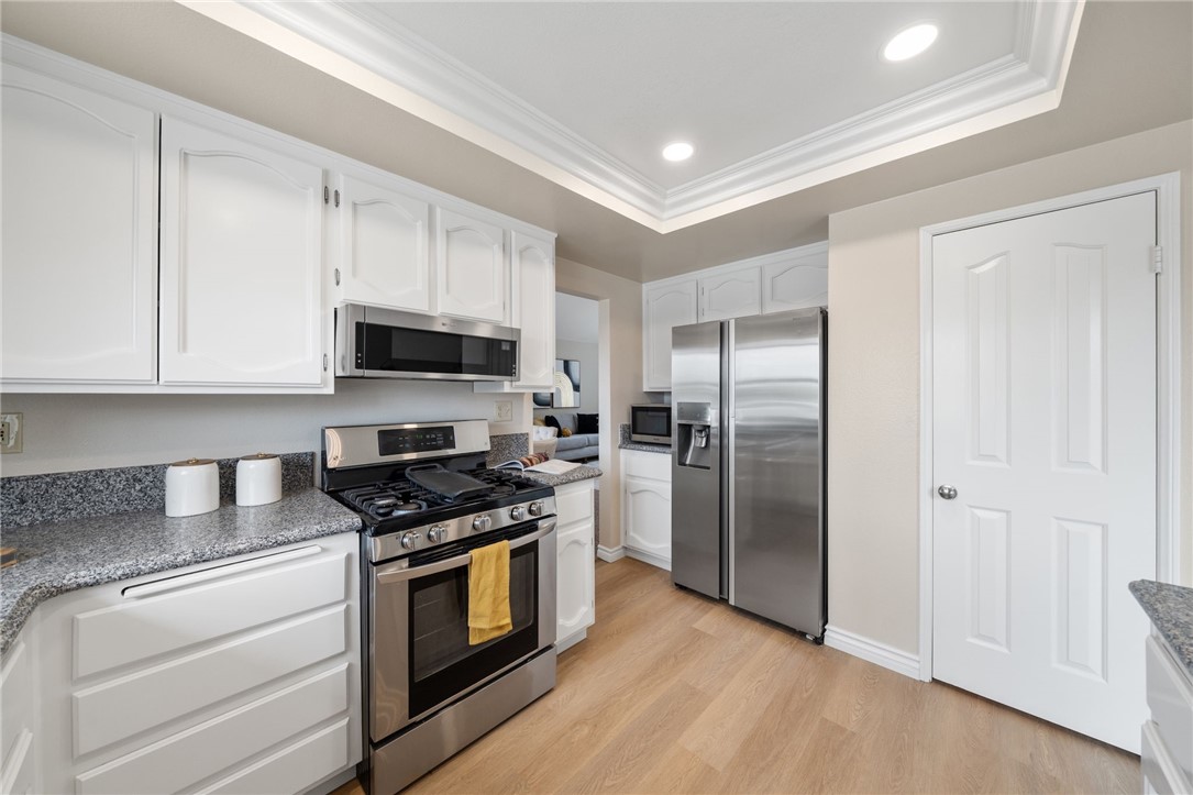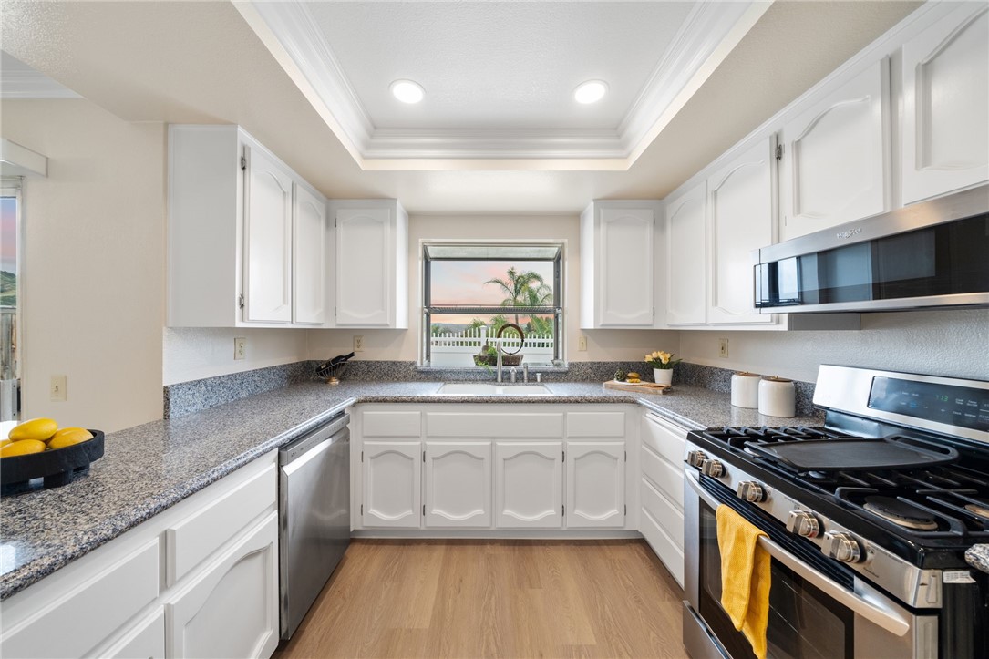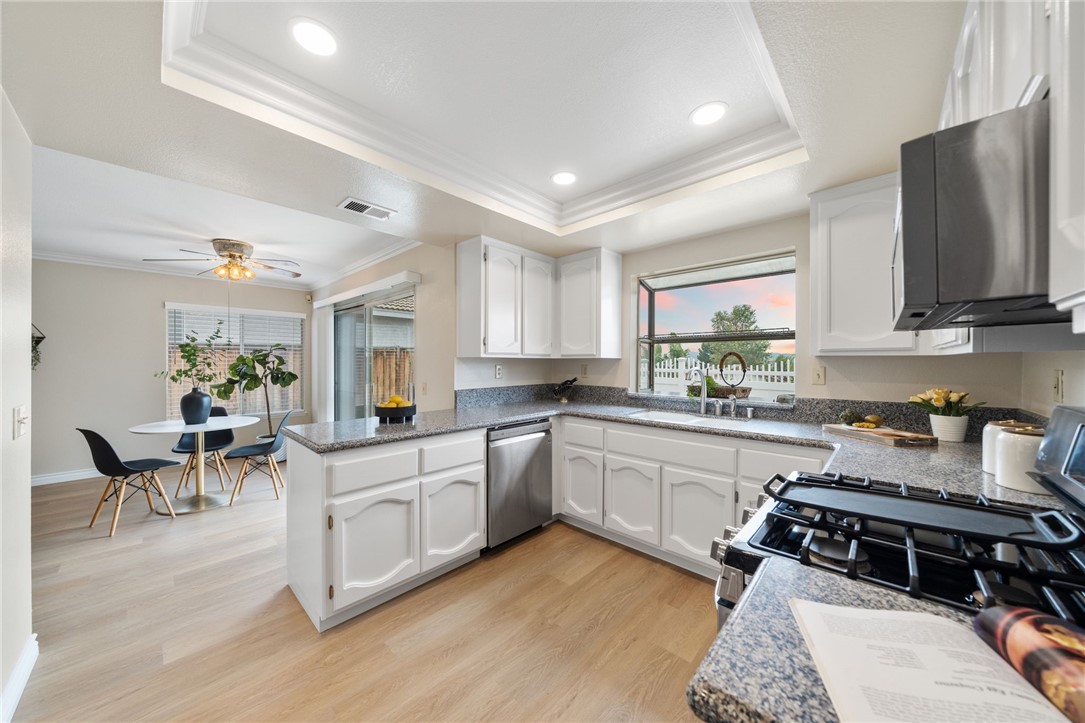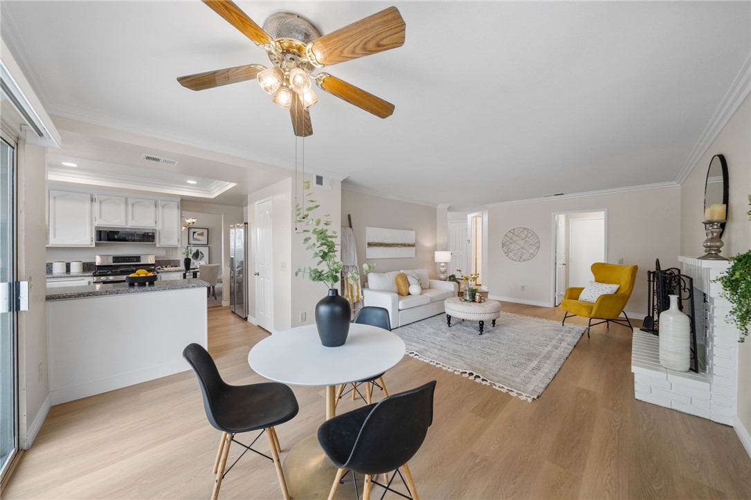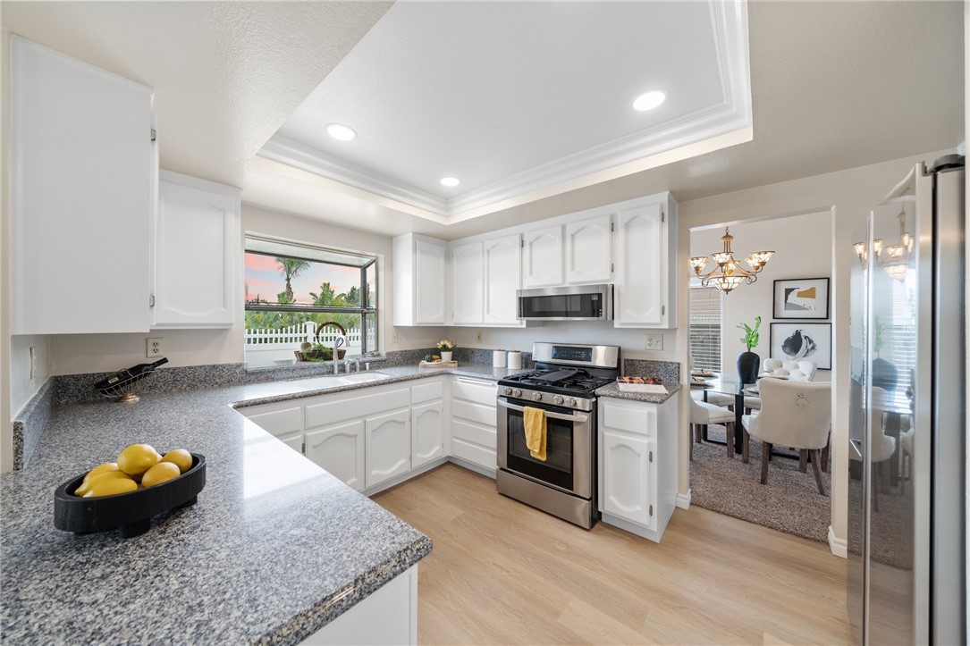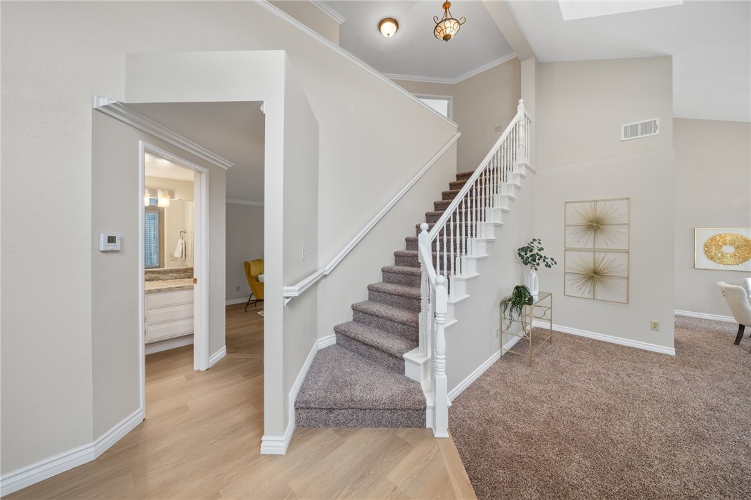 Nestled within the prestigious Sierra Del Oro community--cradled between the serene Santa Ana Mountains and the unspoiled beauty of Chino Hills State Park--this exceptional four-bedroom residence offers a rare blend of comfort and breathtaking natural surroundings. Bordering Yorba Linda and moments from scenic open spaces, this home epitomizes Southern California living at its finest. Beautifully refreshed and in excellent move-in condition, the home showcases dazzling views of the Chino Hills, visible from both interior and exterior vantage points. Inside, fresh two-tone paint, new plush carpet, and luxury plank tile flooring are adorned with tall baseboards and new window blinds, setting a sophisticated tone. Voluminous ceilings rise above the entry, living, and dining areas, while stacked windows fill the space with natural light and accentuate the home's airy ambiance. The heart of the home is the tastefully updated kitchen, where freshly painted cabinetry is paired with sleek granite countertops, new recessed lighting, stainless steel appliances, including the refrigerator, and a generous walk-in pantry. The adjoining breakfast nook flows seamlessly into a cozy family room, complete with a classic fireplace and elegant crown molding--an inviting space to gather and unwind. Upstairs, the private primary suite is a true retreat. Elevated above the neighboring home, it offers exceptional privacy and spectacular panoramic views through a grand window. A double-door entrance leads to a spacious sanctuary featuring vaulted ceilings, a relaxing lounge area, a large walk-in closet, and a tastefully updated en-suite bath with quartz countertops, new fixtures, and a new toilet. Three additional bedrooms provide ample space for family or guests, each equipped with a ceiling fan for added comfort. The secondary bathroom mirrors the home's upscale appointments with quartz surfaces, updated lighting, and new plumbing fixtures. Additional enhancements include an upgraded HVAC system, stylish vinyl fencing, and contemporary lighting throughout the property. The home's prime location offers convenient access to parks, shopping, and a California Distinguished School. Adventure and exploration await just moments away at Skyline Trail and the surrounding open-space preserves, while major transportation routes--such as the 91 freeway, 241 toll road, and Metrolink--ensure a seamless connection to all of Orange County's vibrant offerings.