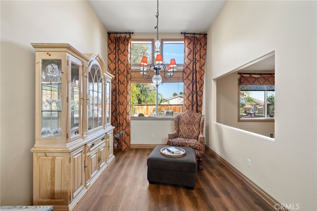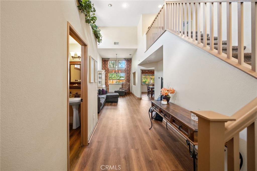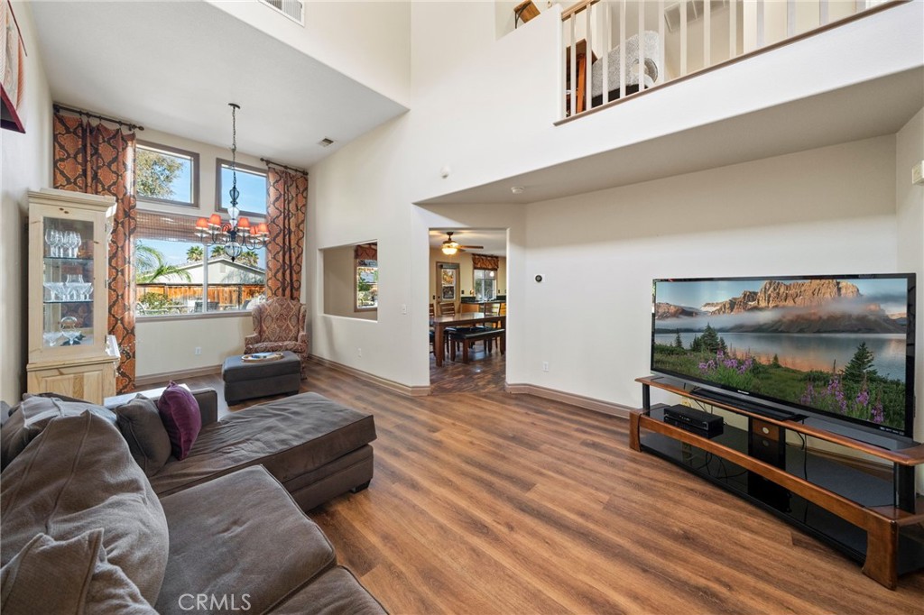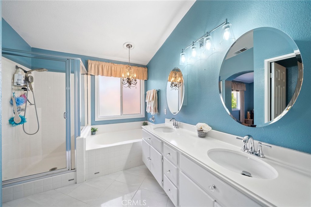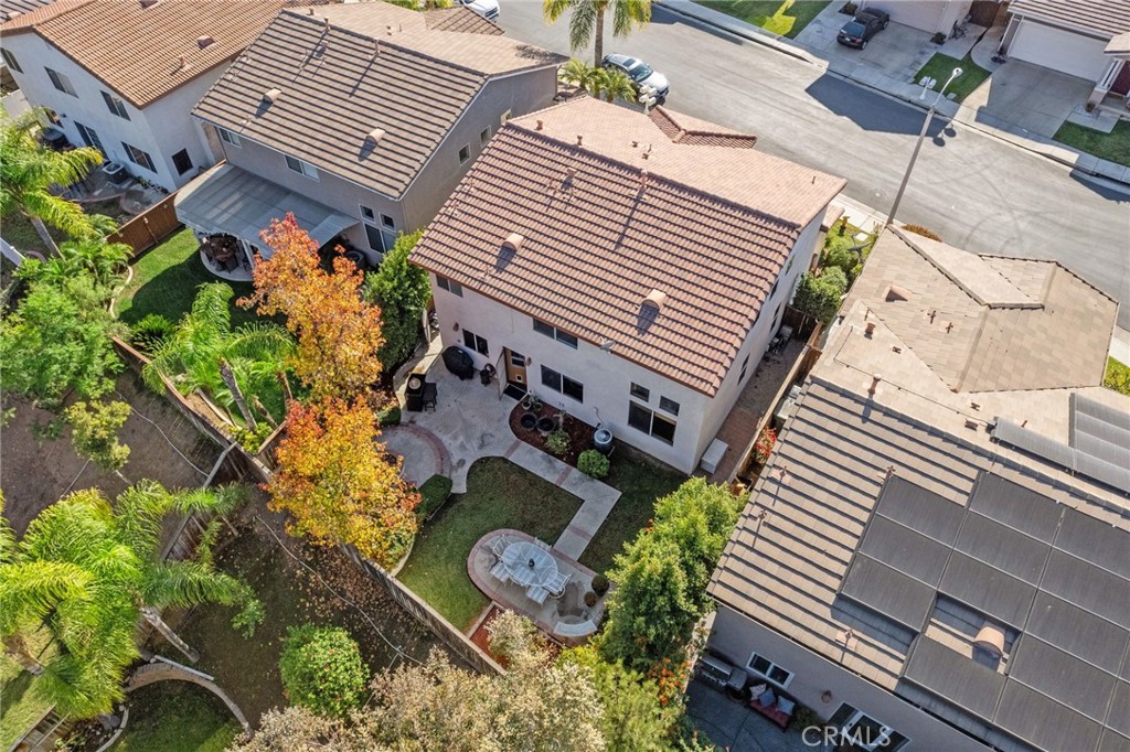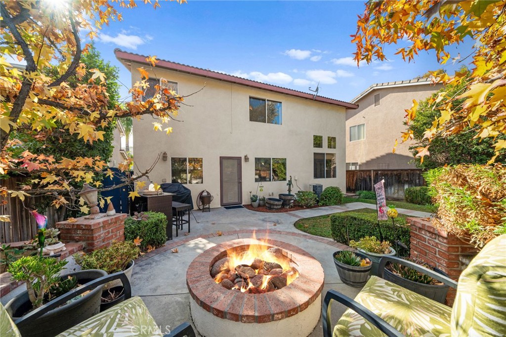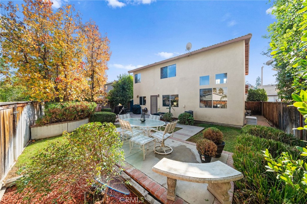 Welcome to 1221 Longport Way, an elegant sanctuary nestled in the desirable gated community of Ashwood in South Corona. This exquisite two-story Mediterranean-inspired home invites you to experience a lifestyle of comfort and sophistication. As you approach, the inviting front porch offers a perfect spot to enjoy the gentle afternoon breeze. Step inside to discover luxury vinyl floors with 5-inch baseboards gracing the living and dining areas, where two-story-high ceilings and stacked windows flood the space with natural light. Custom casings on all windows and a refaced fireplace enhance the home's elegant ambiance. The heart of the home is the open-concept family room and kitchen, where rectangular tile floors provide a seamless transition. The kitchen is a chef's delight, featuring granite countertops and newer appliances, including a refrigerator, a preparation island with casual seating, and a walk-in pantry. Retreat to the primary bedroom, a haven of tranquility with vaulted ceilings, romantic pendant lighting, a seating area, and a generous walk-in closet. The ensuite bath is a luxurious escape, complete with a separate soaking tub, a walk-in shower, and heated floors. The secondary bedrooms are equally inviting, each equipped with ceiling fans and mirrored closet doors. Upstairs, a convenient laundry room and a versatile nook area offer additional functionality. The backyard is a private oasis adorned with mature trees that transform with the seasons. Two decks provide ample space for outdoor entertaining, including a round deck with a gas fire pit at its center, perfect for cozy winter gatherings, and the spacious yard offers potential for a future pool. This home's prime location is a true lifestyle enhancer, with nearby parks, top-rated Santiago High School, and Orange Elementary just steps away. Nature lovers will appreciate easy access to local trails like the iconic Skyline Trail, perfect for hiking, biking, or simply soaking in the fresh air. Shopping and dining attractions, including Dos Lagos Outdoor Mall, The Crossings, and Bedford Marketplace, are moments away, as is the convenient access to the 15 freeway and FastTrac lanes. Experience the elegance and welcoming charm of 1221 Longport Way, where every detail has been thoughtfully designed to enhance your living experience.