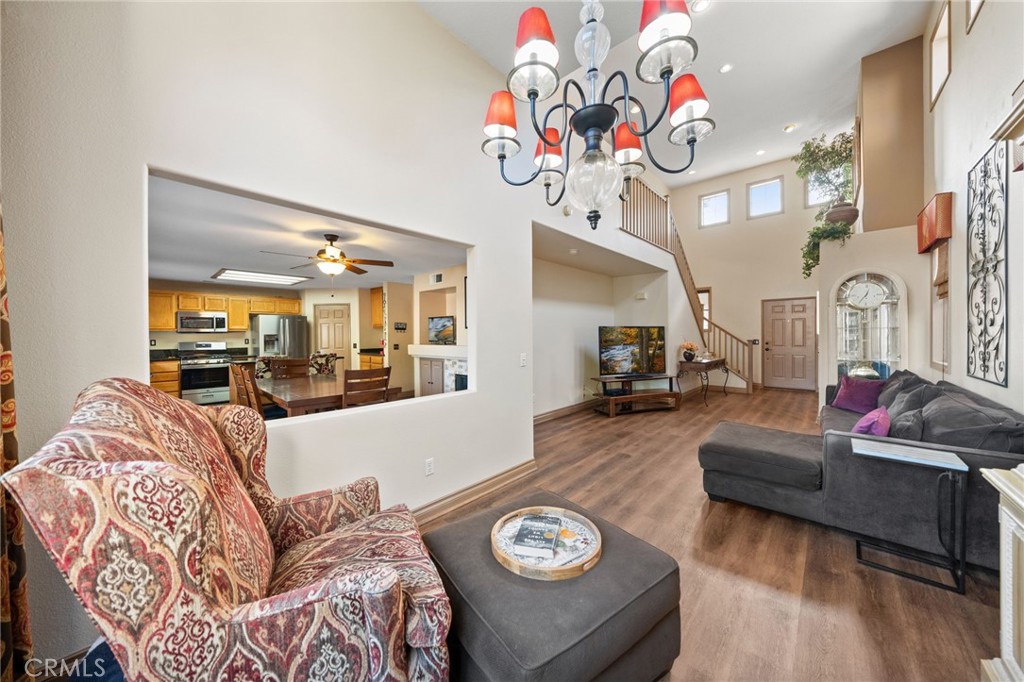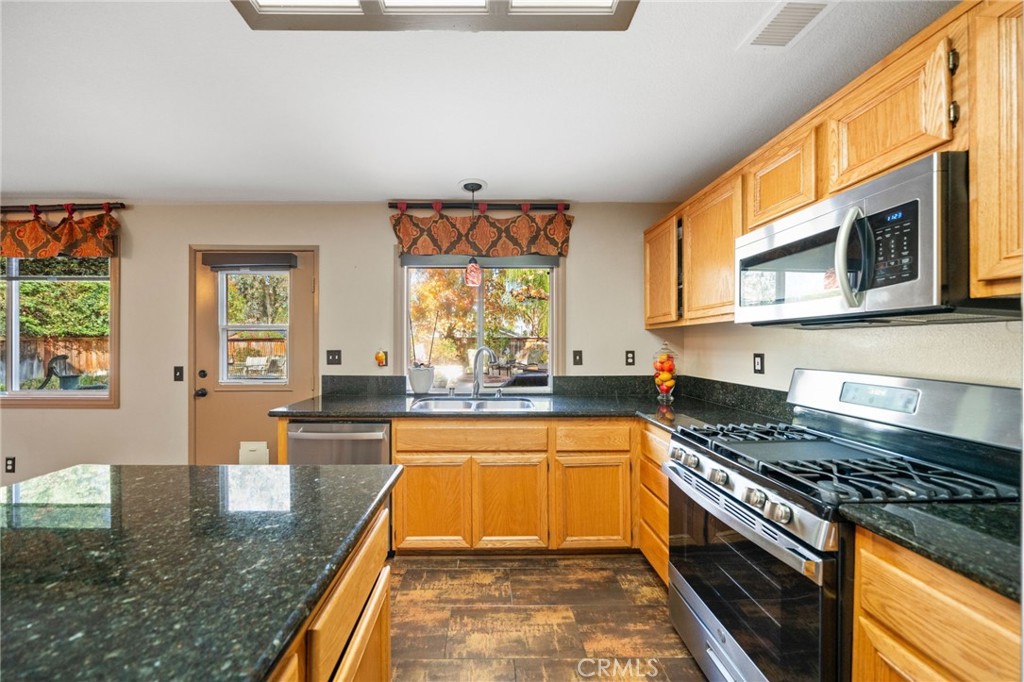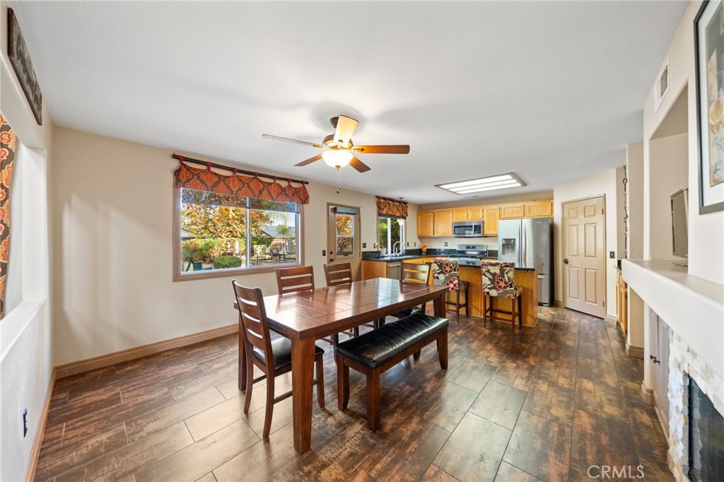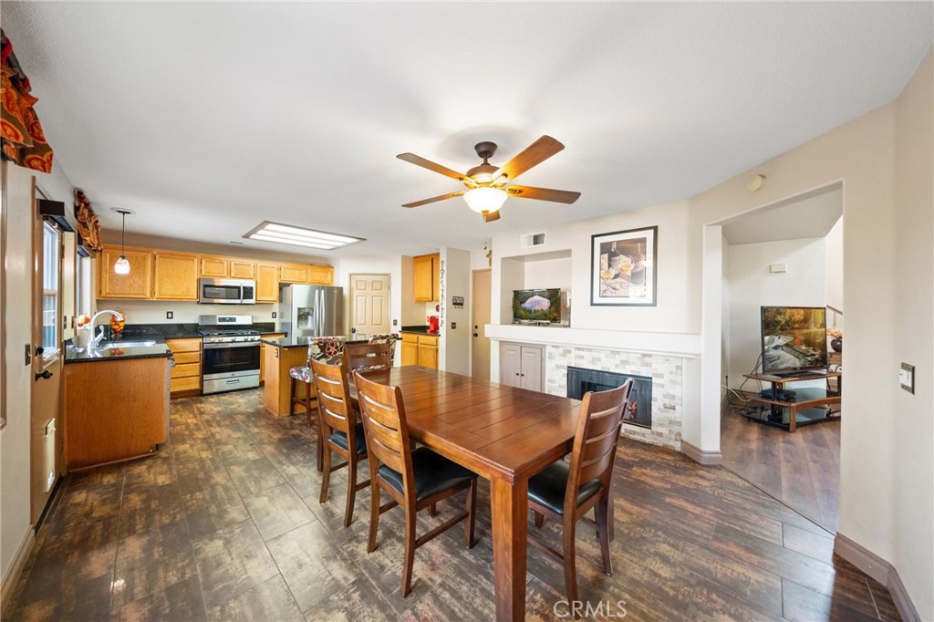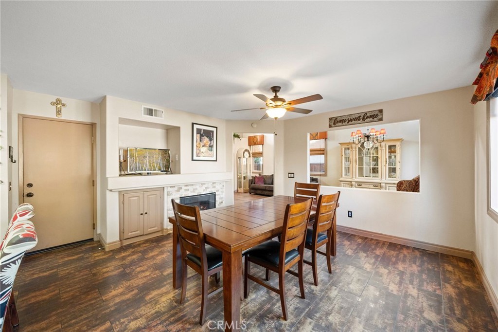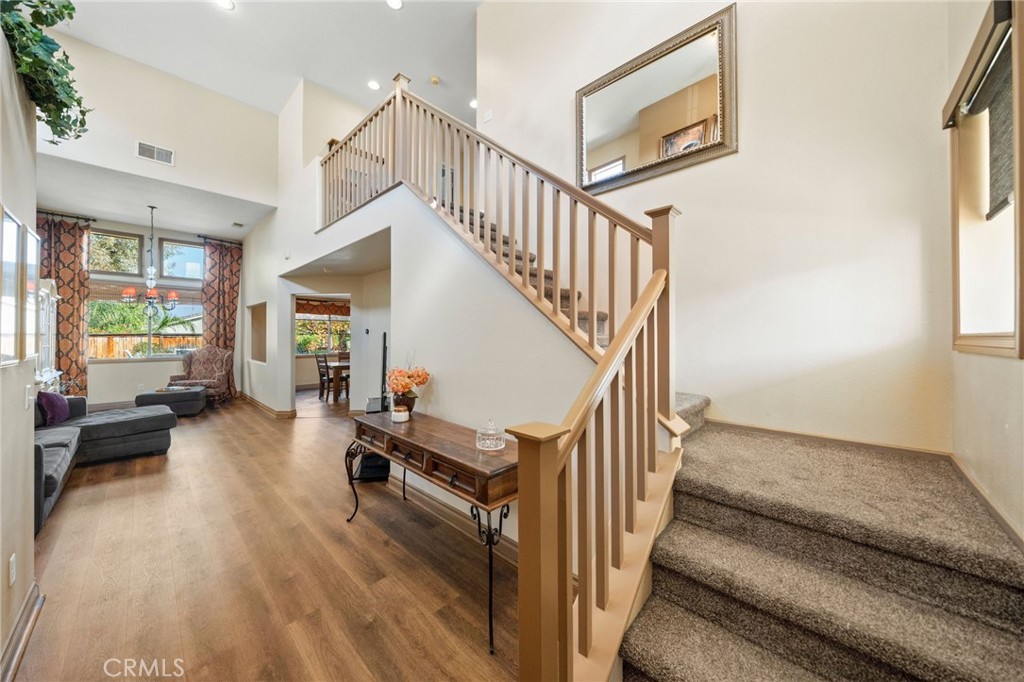 Welcome to 1221 Longport Way, an elegant sanctuary nestled in the desirable gated community of Ashwood in South Corona. This exquisite two-story Mediterranean-inspired home invites you to experience a lifestyle of comfort and sophistication. As you approach, the inviting front porch offers a perfect spot to enjoy the gentle afternoon breeze. Step inside to discover luxury vinyl floors with 5-inch baseboards gracing the living and dining areas, where two-story-high ceilings and stacked windows flood the space with natural light. Custom casings on all windows and a refaced fireplace enhance the home's elegant ambiance. The heart of the home is the open-concept family room and kitchen, where rectangular tile floors provide a seamless transition. The kitchen is a chef's delight, featuring granite countertops and newer appliances, including a refrigerator, a preparation island with casual seating, and a walk-in pantry. Retreat to the primary bedroom, a haven of tranquility with vaulted ceilings, romantic pendant lighting, a seating area, and a generous walk-in closet. The ensuite bath is a luxurious escape, complete with a separate soaking tub, a walk-in shower, and heated floors. The secondary bedrooms are equally inviting, each equipped with ceiling fans and mirrored closet doors. Upstairs, a convenient laundry room and a versatile nook area offer additional functionality. The backyard is a private oasis adorned with mature trees that transform with the seasons. Two decks provide ample space for outdoor entertaining, including a round deck with a gas fire pit at its center, perfect for cozy winter gatherings, and the spacious yard offers potential for a future pool. This home's prime location is a true lifestyle enhancer, with nearby parks, top-rated Santiago High School, and Orange Elementary just steps away. Nature lovers will appreciate easy access to local trails like the iconic Skyline Trail, perfect for hiking, biking, or simply soaking in the fresh air. Shopping and dining attractions, including Dos Lagos Outdoor Mall, The Crossings, and Bedford Marketplace, are moments away, as is the convenient access to the 15 freeway and FastTrac lanes. Experience the elegance and welcoming charm of 1221 Longport Way, where every detail has been thoughtfully designed to enhance your living experience.