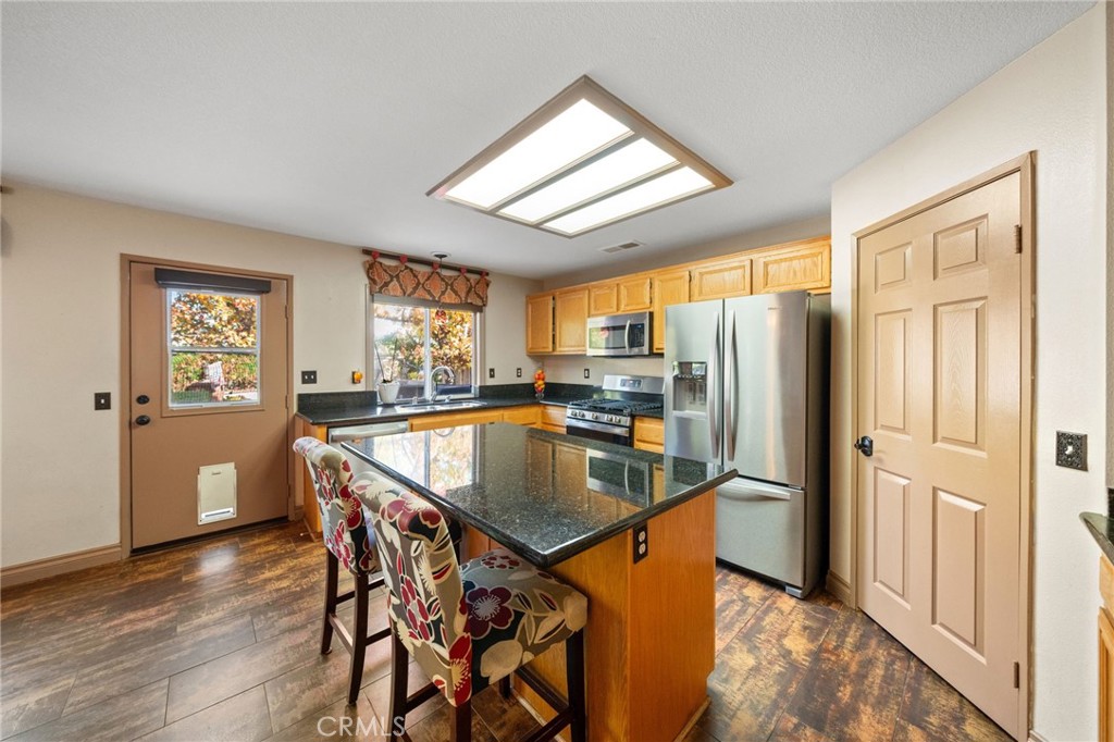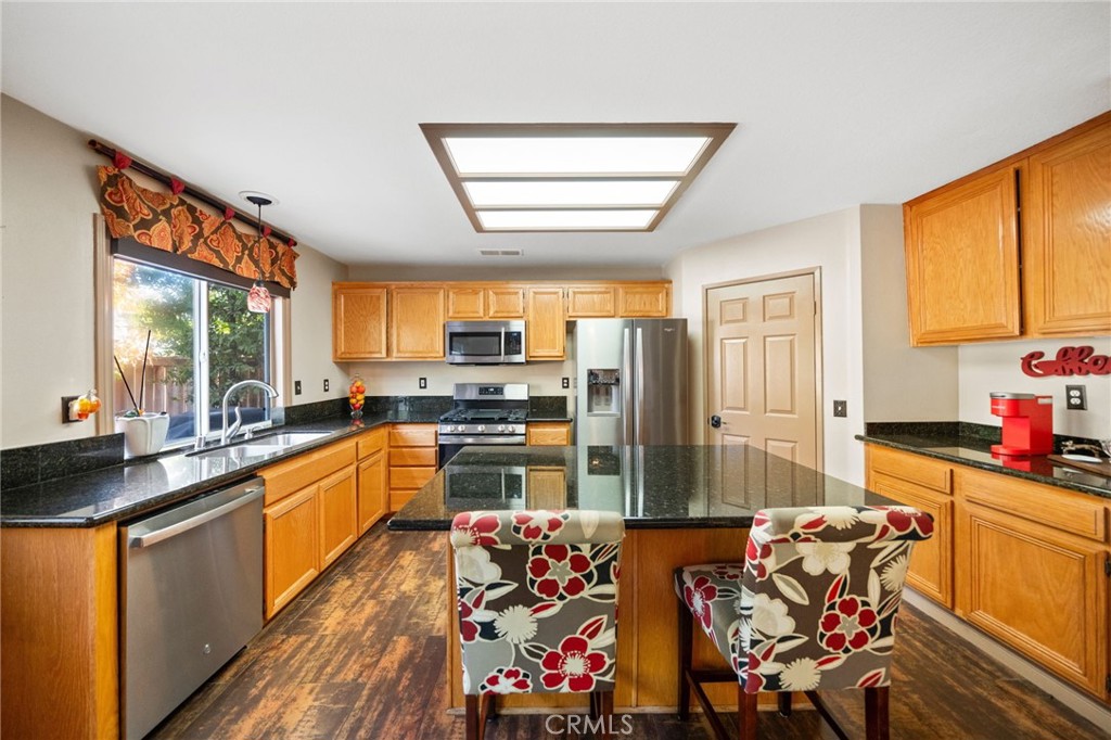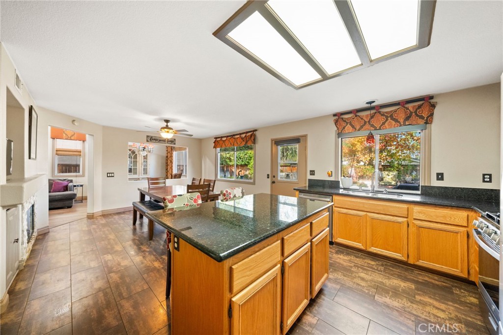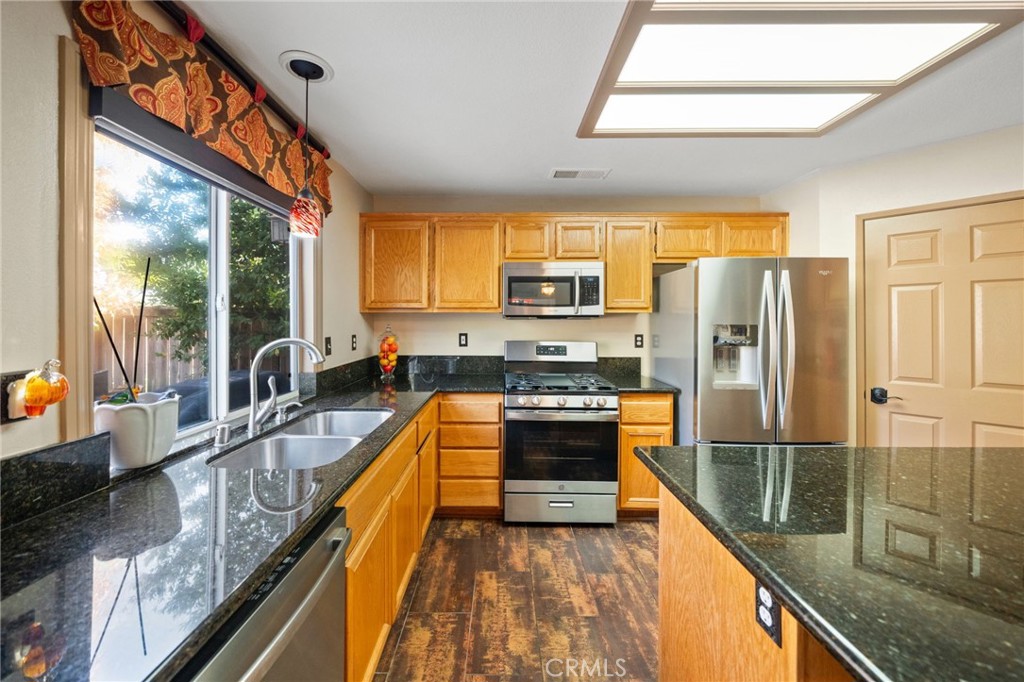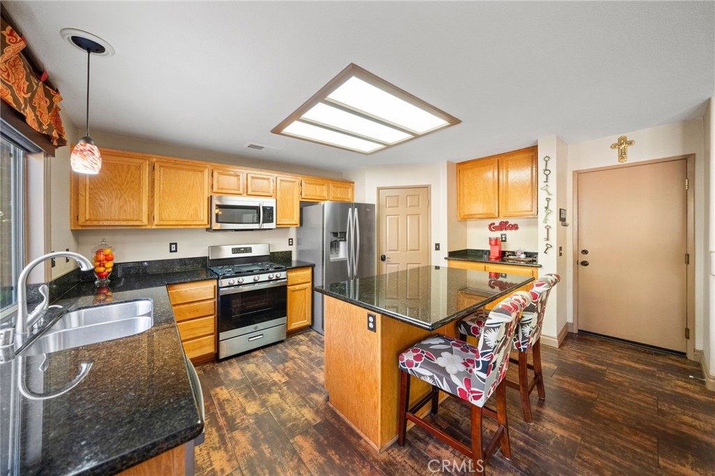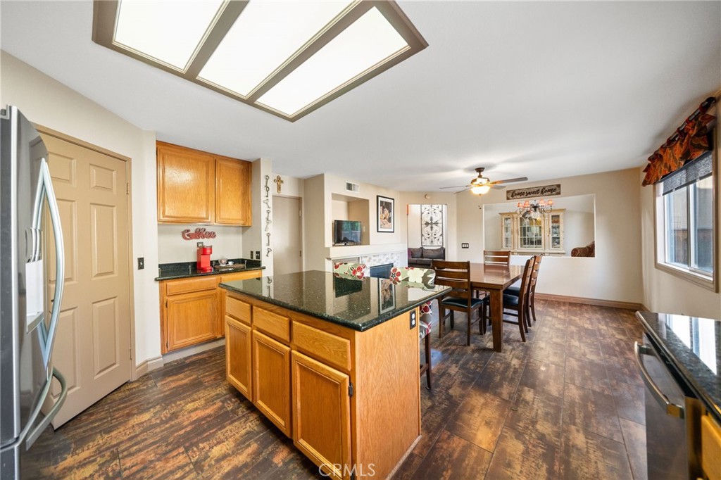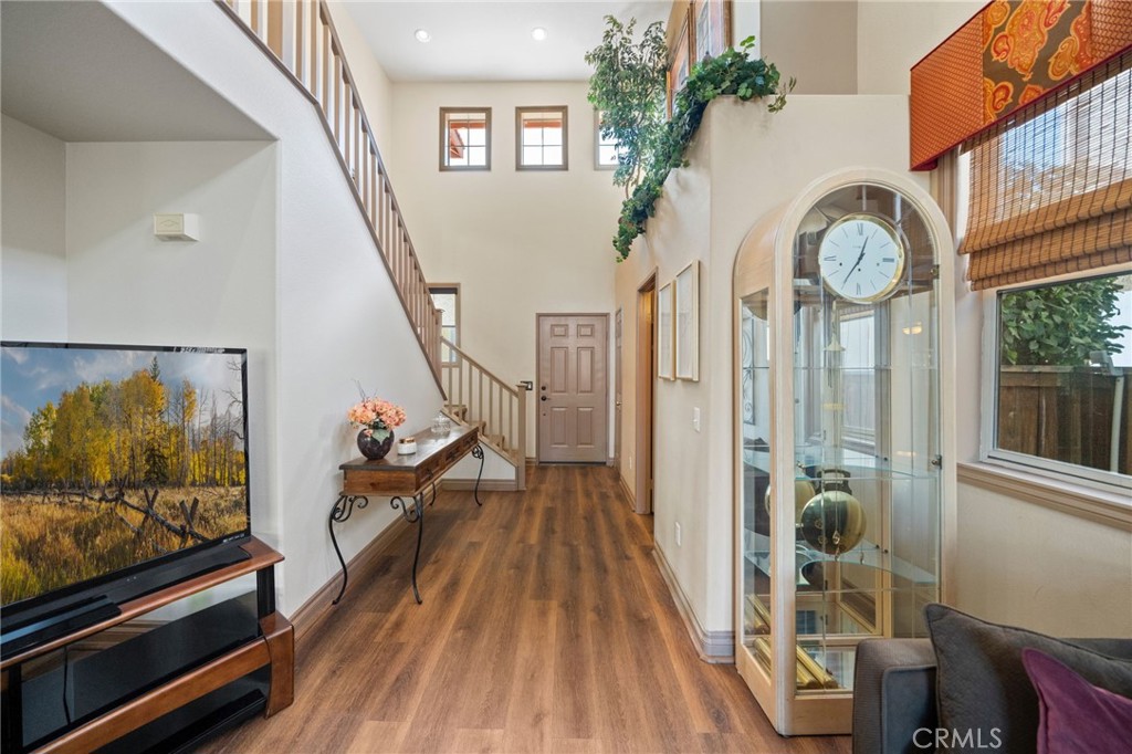 Welcome to 1221 Longport Way, an elegant sanctuary nestled in the desirable gated community of Ashwood in South Corona. This exquisite two-story Mediterranean-inspired home invites you to experience a lifestyle of comfort and sophistication. As you approach, the inviting front porch offers a perfect spot to enjoy the gentle afternoon breeze. Step inside to discover luxury vinyl floors with 5-inch baseboards gracing the living and dining areas, where two-story-high ceilings and stacked windows flood the space with natural light. Custom casings on all windows and a refaced fireplace enhance the home's elegant ambiance. The heart of the home is the open-concept family room and kitchen, where rectangular tile floors provide a seamless transition. The kitchen is a chef's delight, featuring granite countertops and newer appliances, including a refrigerator, a preparation island with casual seating, and a walk-in pantry. Retreat to the primary bedroom, a haven of tranquility with vaulted ceilings, romantic pendant lighting, a seating area, and a generous walk-in closet. The ensuite bath is a luxurious escape, complete with a separate soaking tub, a walk-in shower, and heated floors. The secondary bedrooms are equally inviting, each equipped with ceiling fans and mirrored closet doors. Upstairs, a convenient laundry room and a versatile nook area offer additional functionality. The backyard is a private oasis adorned with mature trees that transform with the seasons. Two decks provide ample space for outdoor entertaining, including a round deck with a gas fire pit at its center, perfect for cozy winter gatherings, and the spacious yard offers potential for a future pool. This home's prime location is a true lifestyle enhancer, with nearby parks, top-rated Santiago High School, and Orange Elementary just steps away. Nature lovers will appreciate easy access to local trails like the iconic Skyline Trail, perfect for hiking, biking, or simply soaking in the fresh air. Shopping and dining attractions, including Dos Lagos Outdoor Mall, The Crossings, and Bedford Marketplace, are moments away, as is the convenient access to the 15 freeway and FastTrac lanes. Experience the elegance and welcoming charm of 1221 Longport Way, where every detail has been thoughtfully designed to enhance your living experience.