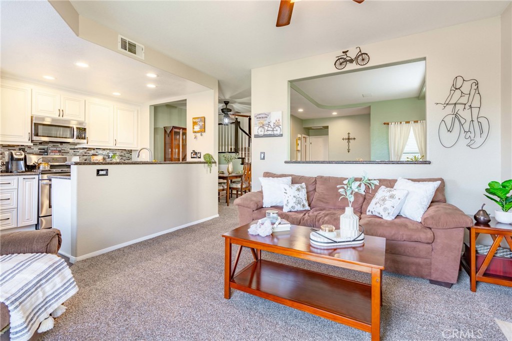 Welcome to this stunning residence nestled in the coveted community of Sierra Del Oro, adjacent to Yorba Linda. This elegant 3-bedroom, 3-bathroom home exudes pride of ownership at every turn, boasting a total square footage of 1782 square feet with an additional loft and office. Upon entering, you are greeted by a seamless blend of sophistication and comfort, with formal living and dining areas adorned with recessed ceilings, subtle interior paint, and recessed lighting. The kitchen is a culinary masterpiece, featuring Tuscany-style cabinetry with soft-close mechanisms, granite countertops, full glass backsplash, and stainless-steel appliances. Open to the kitchen, the family room is the perfect space for relaxation and entertainment, complete with built-in speakers and a cozy fireplace. Ascending the stairs, you'll find a loft and a small office, offering versatile spaces for work or leisure. The primary bedroom is a sanctuary unto itself, boasting a lounge area, a walking closet, and French Doors open to a balcony to bask in the city lights and mountain views. The ensuite bathroom is a luxurious retreat featuring a separate tub and shower, upgraded cabinetry and countertops, framed mirrors, new flooring, and new lighting. Outside, the cozy backyard beckons with stamped concrete, lush grass for furry friends, and vinyl fences, all while providing captivating views. The community amenities include a swimming pool and a toddler's playground, ensuring endless opportunities for leisure and recreation. Additionally, the home is just minutes away from shopping and two parks, including one with a water-splash zone. This residence's location is truly unparalleled, with proximity to mountains and expansive tracts of preserved open space, including the famed Skyline trails. Seamless accessibility to Orange County's vibrant offerings is guaranteed, with major transportation arteries, including the 91 freeway, 91 express lanes, 241 toll road, 71 expressway, and the Metrolink, providing effortless passage to destinations near and far. This fantastic home presents an extraordinary opportunity to embrace a lifestyle of luxury, convenience, and natural beauty. Don't miss the chance to make this exquisite residence your own.