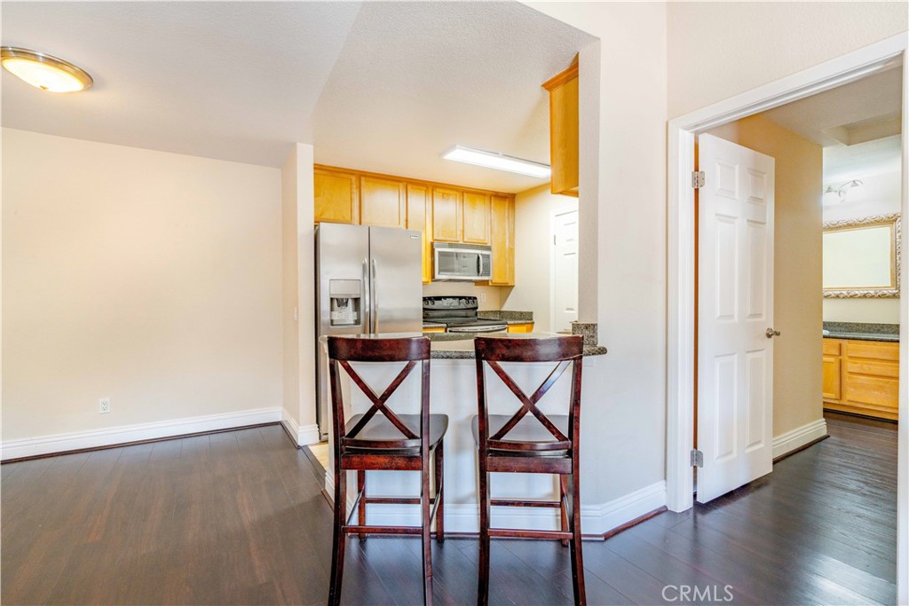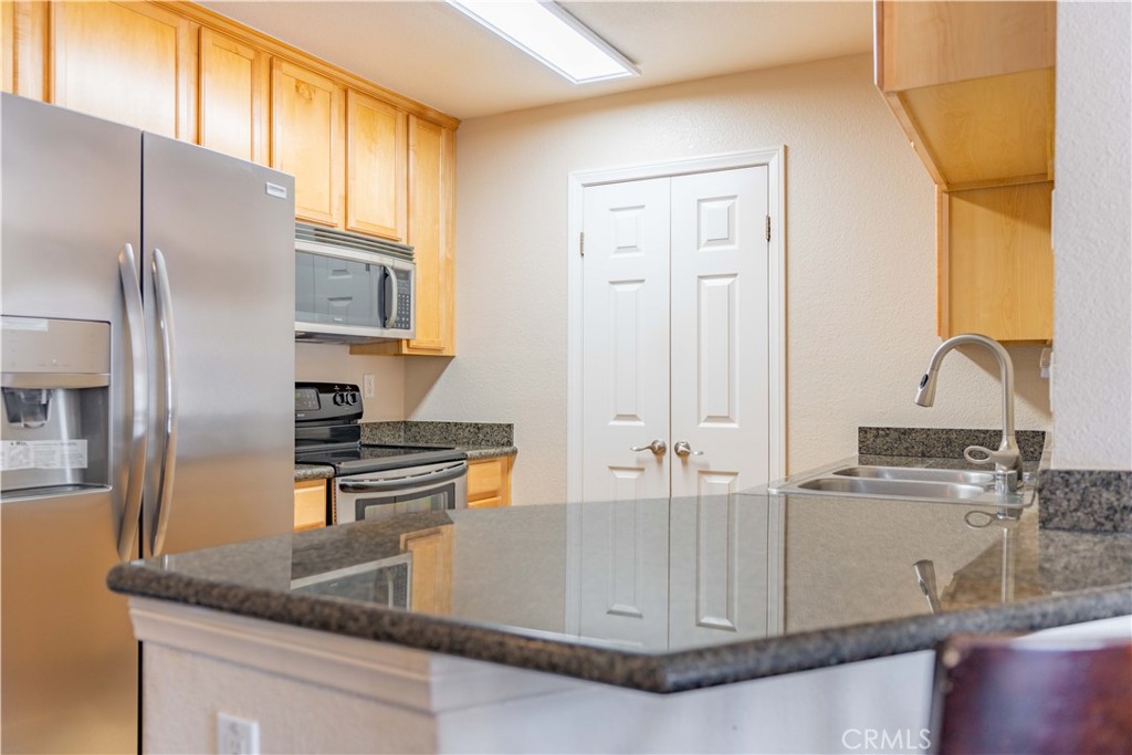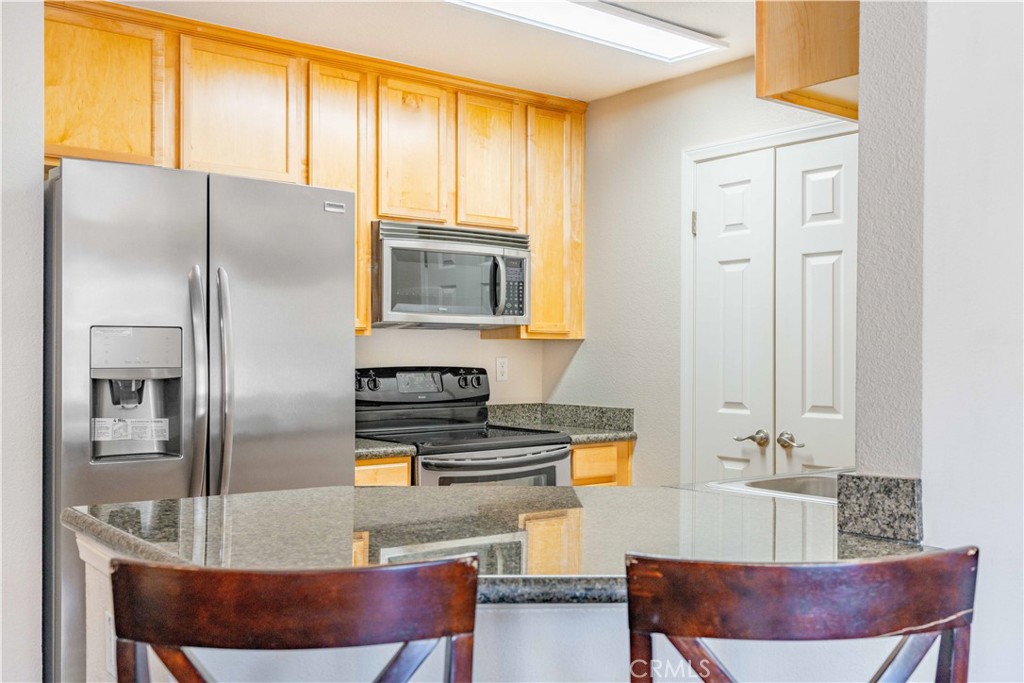 Welcome to your new sanctuary in the sought-after Sierra Del Oro community, where every amenity and convenience awaits at your doorstep! This exquisite 2-bedroom, 2-bath retreat boasts a rare 1-car garage, a convenient carport, and an additional parking space. Nestled as an end unit with nobody above, revel in the tranquility and privacy this exclusive abode affords. Step inside and be greeted by soaring vaulted ceilings and a cozy fireplace, setting the stage for evenings of elegance and relaxation. The living room, adorned with laminated plank flooring, beckons you to unwind in style, with a balcony offering tantalizing peek-a-boo views of the majestic mountains--your own private oasis amidst nature's splendors. Indulge your inner chef in the open kitchen, seamlessly integrated with the living room and boasting granite countertops, a breakfast bar, and stainless-steel appliances, including a refrigerator. Each bedroom is thoughtfully positioned on opposite ends of the home, ensuring maximum privacy and tranquility. Complete with its own bathroom and walk-in closets, every inch of this haven is designed with your utmost comfort in mind. But the luxuries don't end there--enjoy the convenience of an inside full-size washer and dryer room and a storage room, making organization a breeze. And every day feels like a vacation with an array of resort-style amenities awaiting you in the community--including a clubhouse, fitness room, swimming pool and spa, beach volleyball court, and basketball hoops. Wait, there's more! The association includes water, trash, and sewer, and the HOA has installed a new roof. Convenience is key, with two parks--one boasting a splash zone, shopping hubs, and a school mere moments away, ensuring everything you need is within reach. Embrace the unparalleled location, providing seamless accessibility to Orange County's vibrant offerings and expansive tracts of preserved open space, including the famed Skyline trails. With major transportation arteries nearby, including the 91 freeway, 91 express lanes, 241 toll road, 71 expressway, and Metrolink, the opportunities for exploration and adventure are limitless.