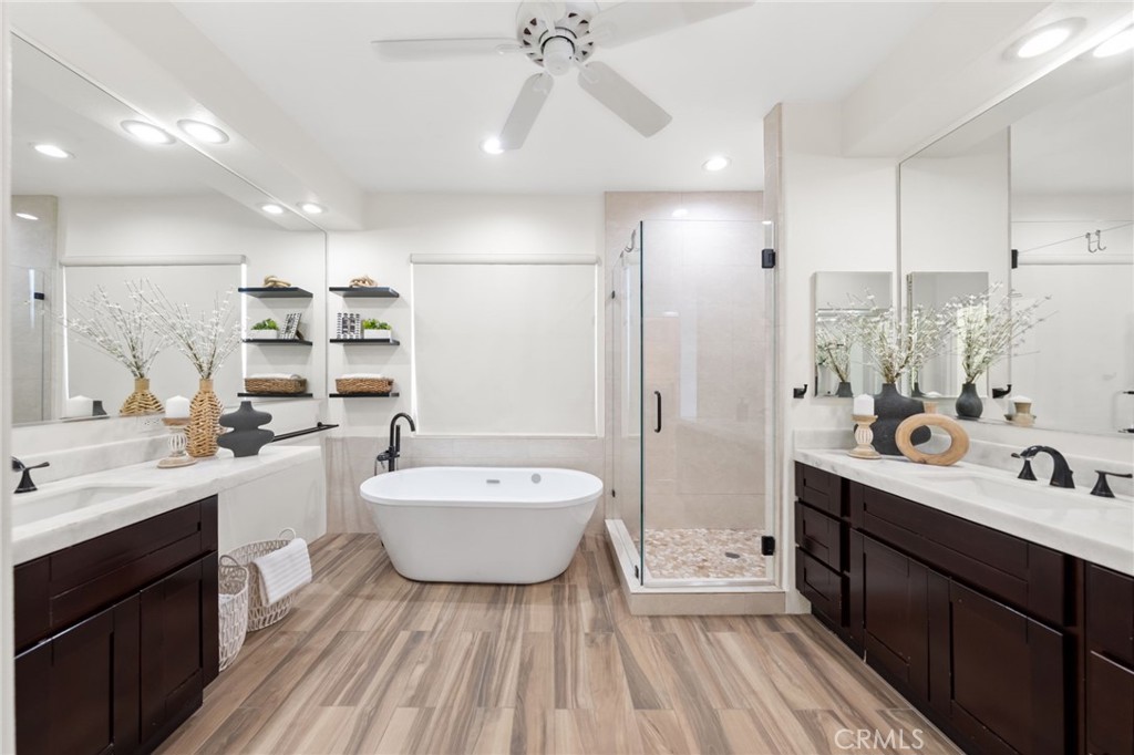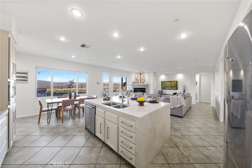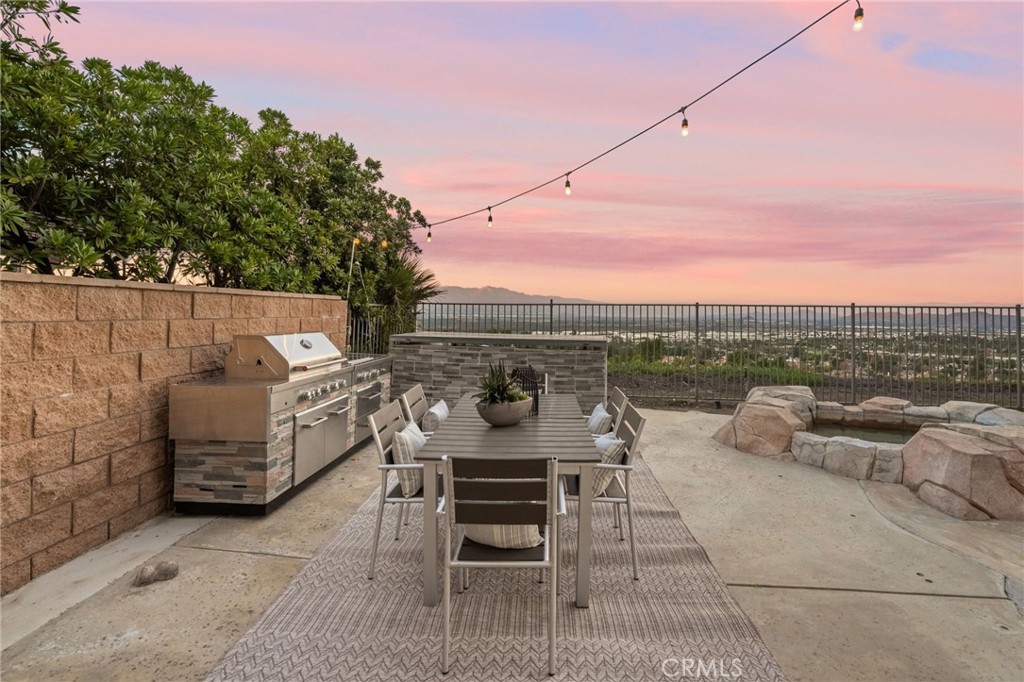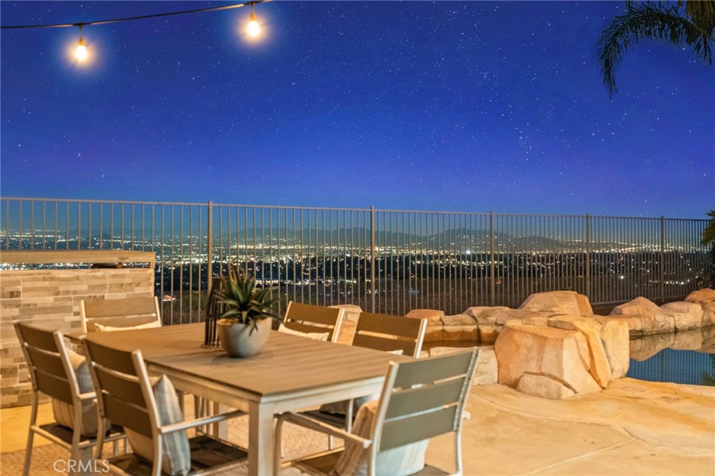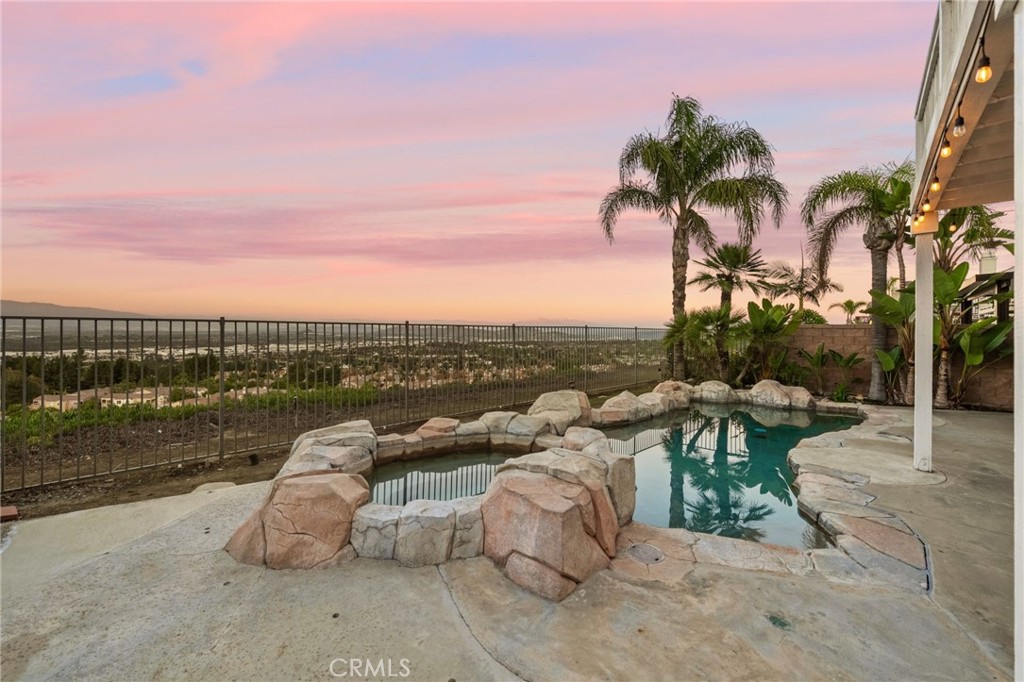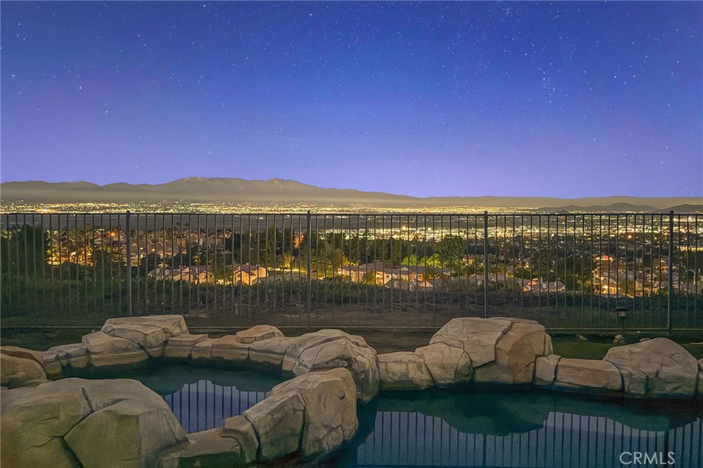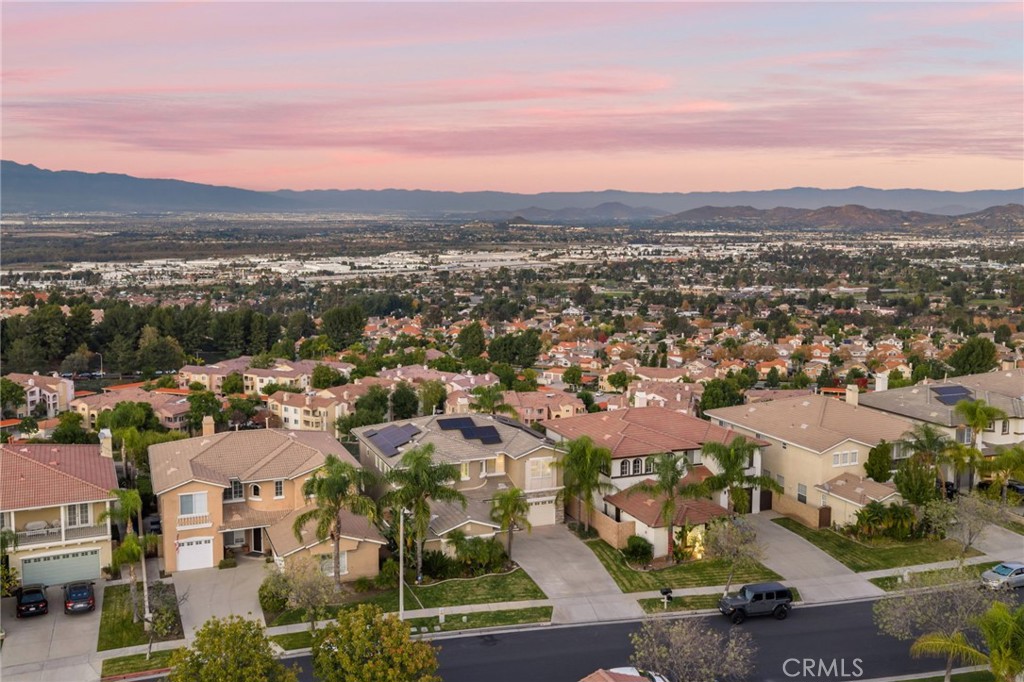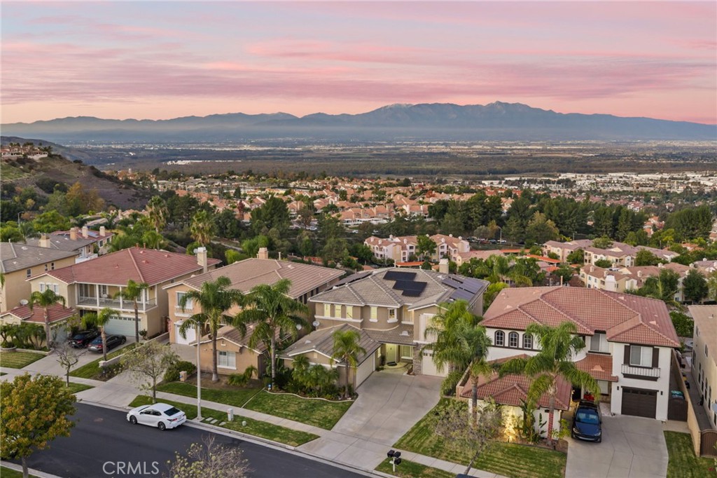 Perched in the scenic enclave of Sierra Del Oro, bordering Yorba Linda, this Mediterranean-inspired pool home captures breathtaking panoramic views of the San Gabriel and San Bernardino Mountains--including Mt. Baldy--and a glittering tapestry of city lights below. Perfectly positioned on a tranquil cul-de-sac with no homes behind, this 4-bedroom, 3-bath residence with a loft offers a rare blend of privacy, sophistication, and resort-style living. Inside, a grand foyer opens to soaring two-story ceilings and floor-to-ceiling windows that flood the living and dining areas with natural light, creating an effortless indoor-outdoor flow. Tile floors encompass the entire house, including brand-new floors upstairs. The chef's kitchen, designed for both beauty and function, showcases gleaming granite countertops with a full backsplash, stainless steel appliances including a refrigerator, a waterfall island with bar seating, and a generous walk-in pantry--all seamlessly connected to the inviting family room anchored by a striking fireplace and expansive views. A main-level bedroom and a fully remodeled bath serve as a versatile retreat for guests or a home office. Upstairs, the primary suite serves as a private sanctuary with no neighbors in sight--only endless views of city lights stretching for miles. The spa-inspired bath features a freestanding soaking tub, a walk-in shower, and a custom-organized walk-in closet. Step onto the private balcony at sunset to enjoy the cool breeze and sweeping vistas. Two additional bedrooms and a spacious loft complete the upper level. Outdoors, the resort ambiance continues with a sparkling rock pool and spa, framed by dramatic views of the mountains and the city. Modern conveniences include a fully owned 46-panel solar system, water softener and filtration systems, and a split 3-car garage with built-in storage and direct access. Perfectly positioned just off the first traffic light leading to the 91 Freeway, this home offers unparalleled convenience--with swift connections to Orange County, the 91 express lanes, the 241 Toll Road, the Metrolink, and the scenic Skyline Trails for outdoor adventure. A rare fusion of elegance, privacy, and natural beauty--this exceptional home offers an elevated lifestyle in one of Sierra Del Oro's most captivating settings.