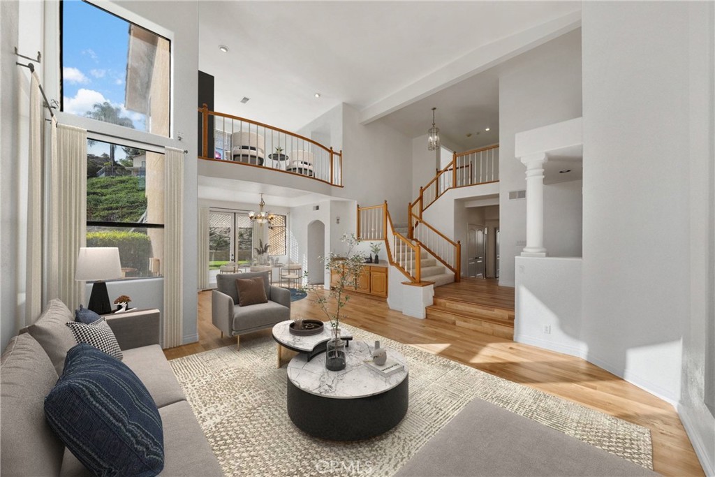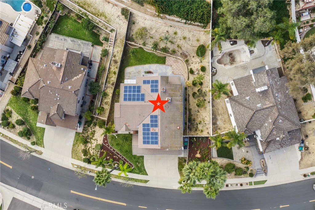 Ideally located on one of the most desirable streets in Sierra Del Oro, this residence offers the rare combination of Orange County proximity, privacy, and mountain views. Nestled in the foothills of the Santa Ana Mountains, the home enjoys a premium setting with no homes across the street or behind, creating a peaceful and open backdrop not easy to find so close to Orange County. The home is truly move-in ready, featuring fresh interior paint, new plush carpeting upstairs, and beautifully re-stained wood floors throughout the main level. An almost new, fully paid-off 36-panel solar system provides substantial long-term energy savings. From the moment you enter through the double doors, you're greeted by a raised foyer and soaring ceilings that set an elegant tone. The formal living and dining rooms showcase dramatic two-story ceilings and expansive floor-to-ceiling windows that flood the space with natural light and bring the outdoors in. The oversized kitchen is designed for both everyday living and entertaining, offering a large center island, generous breakfast bar seating, a built-in desk, and a spacious walk-in pantry. It opens seamlessly to the large family room, which features stacked windows, a gas fireplace, a built-in entertainment center, and sliding doors that lead directly to the backyard--perfect for indoor-outdoor gatherings. A downstairs bedroom with a full bathroom provides flexibility for guests, multi-generational living, or a home office. Upstairs, the primary suite is a true retreat with voluminous ceilings, a dual-sided fireplace, stacked windows, and a sliding door that opens to a private balcony where you can bask in tranquil mountain views. The suite also includes a loft retreat area, an upgraded en-suite bath with a separate tub and shower, and a spacious walk-in closet. An additional bedroom is currently styled as a bonus room and captures city-light views. Situated on an approximately 10,000-square-foot lot, the backyard offers endless possibilities, including space for a swimming pool and potential RV parking, while maintaining peaceful mountain views and privacy with no immediate rear neighbors. Additional highlights include a three-car garage with direct access and built-in cabinetry, a downstairs laundry room with a laundry chute, vinyl fencing, and the added benefit of no HOA and no Mello-Roos. This home has the ideal setting for buyers seeking both convenience and a premium Sierra Del Oro lifestyle.