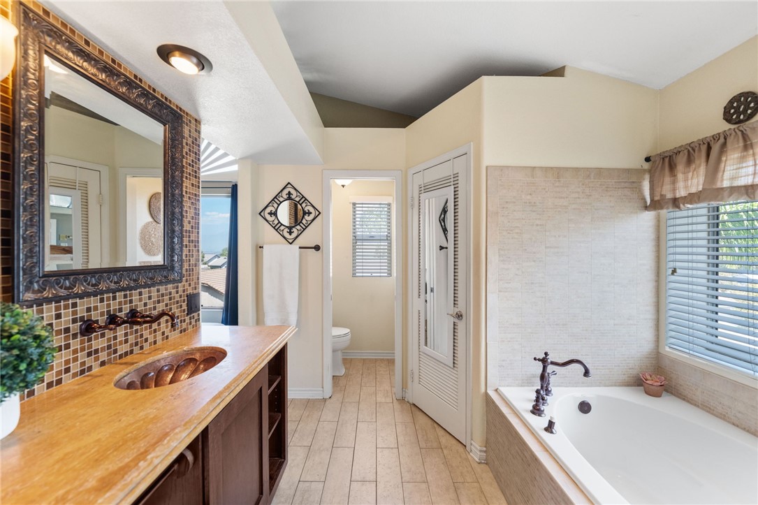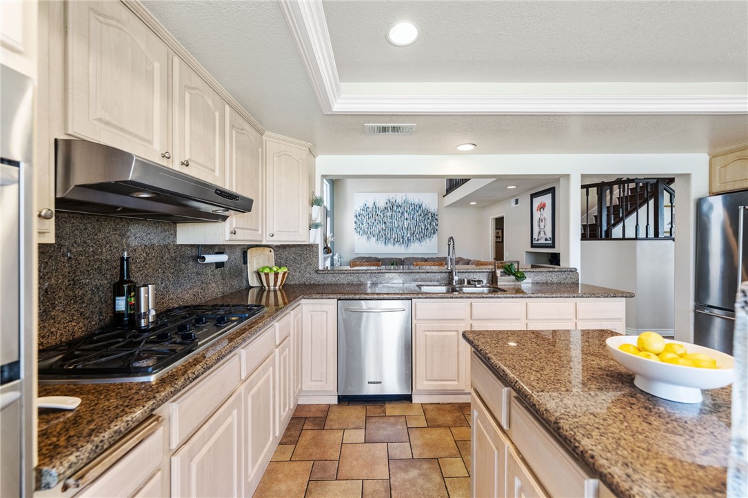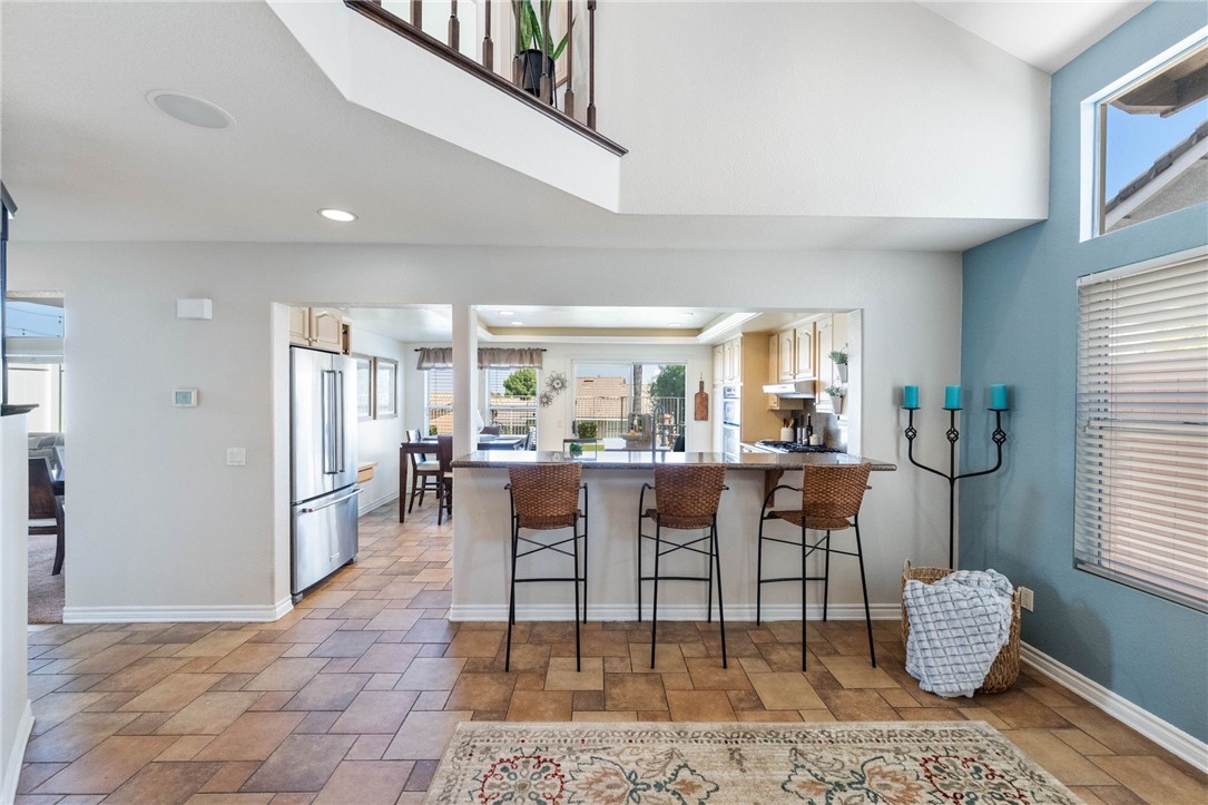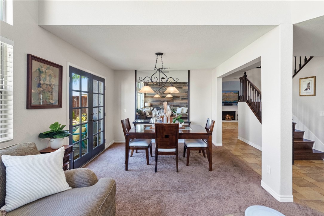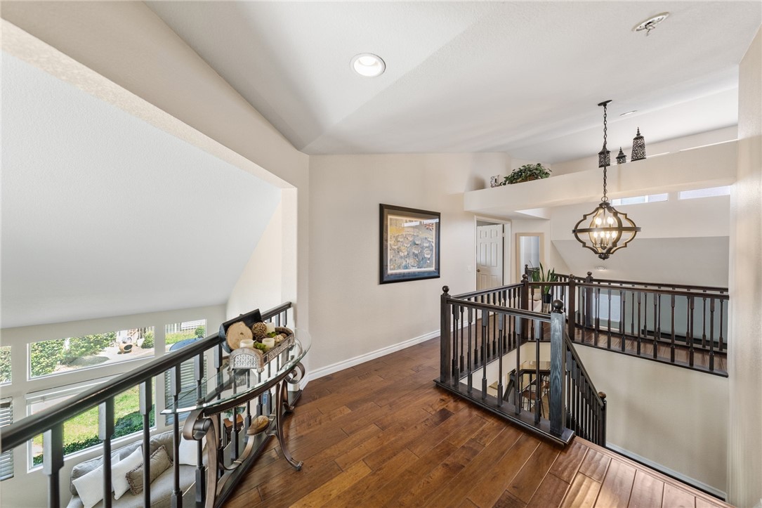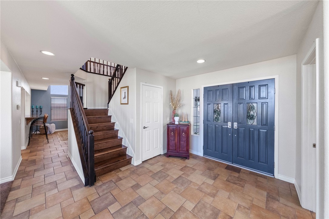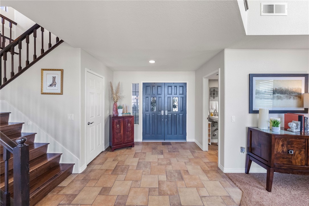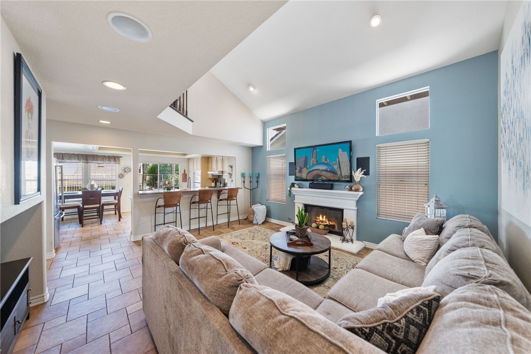 Situated at the end of a tranquil cul-de-sac in the prestigious Sierra Del Oro community near Yorba Linda, this upgraded 4-bedroom and bonus room Spanish-style gem is the epitome of elegance and modern living. As you step through the charming courtyard and enter the double doors, you're welcomed into a spacious foyer that seamlessly flows into formal living and dining areas, where shiplap accent walls and soaring vaulted ceilings create a sense of grandeur. Sunlight pours in through stacked windows, illuminating the Versailles-laid tile floors that span the downstairs, while rich wood floors add warmth to the upper level. The heart of the home is the gourmet kitchen, boasting refaced cabinetry, a central preparation island, and a breakfast bar. Granite countertops with a full backsplash complement the stainless-steel appliances, all brought to life under sleek LED recessed lighting. The adjoining family room is equally impressive, with its expansive layout, vaulted ceilings, and a cozy fireplace, making it the perfect space for gathering with loved ones. Upstairs, the luxurious primary bedroom offers a serene retreat with city-light views, voluminous ceilings, and a relaxing lounge area. Dual walk-in closets provide ample storage, while the spa-like ensuite bath invites you to unwind with a walk-in shower featuring stone walls and dual rain shower heads, a soaking tub, and a vanity adorned with copper sinks and a striking glass tile backsplash. The 5th bedroom, currently modeled as a bonus room, highlights the home's versatility, complete with a custom entertainment center and a built-in office with shelving. The other bedrooms are generously sized, featuring vaulted ceilings and walk-in closets. The backyard is a private oasis with an elevated position that offers views and seclusion, ideal for relaxation and entertainment. Other upgrades include fresh exterior paint, new vinyl fencing, an updated furnace, a water softener, a tankless water heater, a 240 outlet for quicker EV charging, and roll-up garage doors. This remarkable property offers the advantage of no homeowners' association or Mello Roos fees. Its prime location puts you just moments away from a park with a water-splash zone, top-rated schools, and shopping. The home's location is unparalleled, offering seamless accessibility to Orange County's vibrant offerings and to major transportation arteries nearby, including the 91 freeway and Fastrak, 241 toll road, and Metrolink.