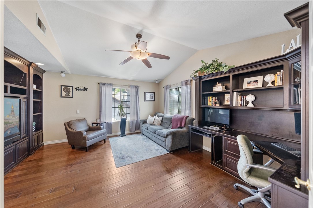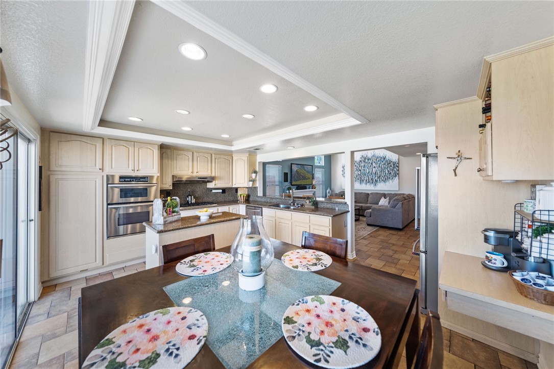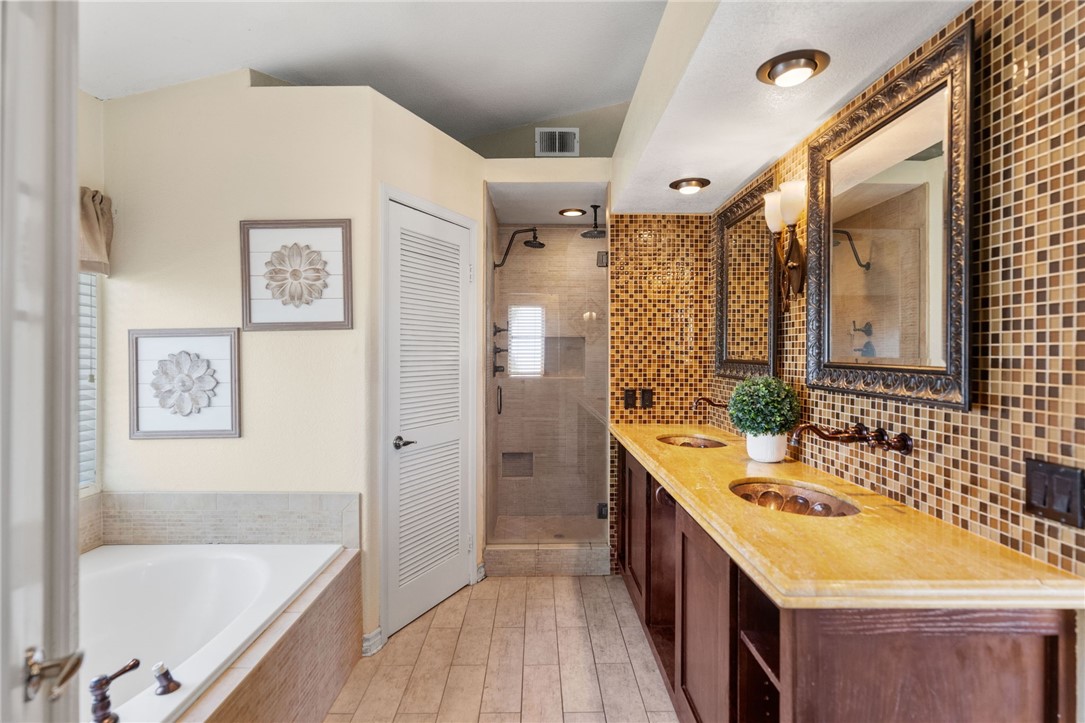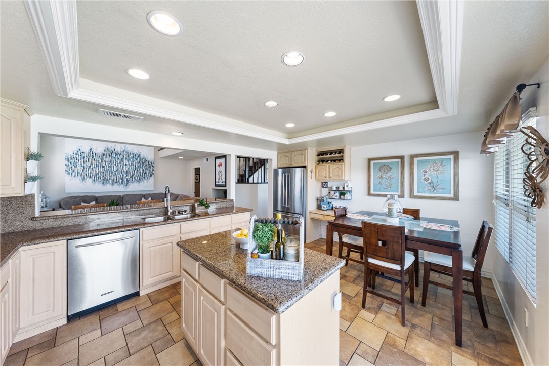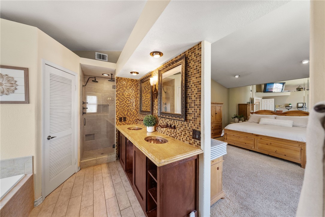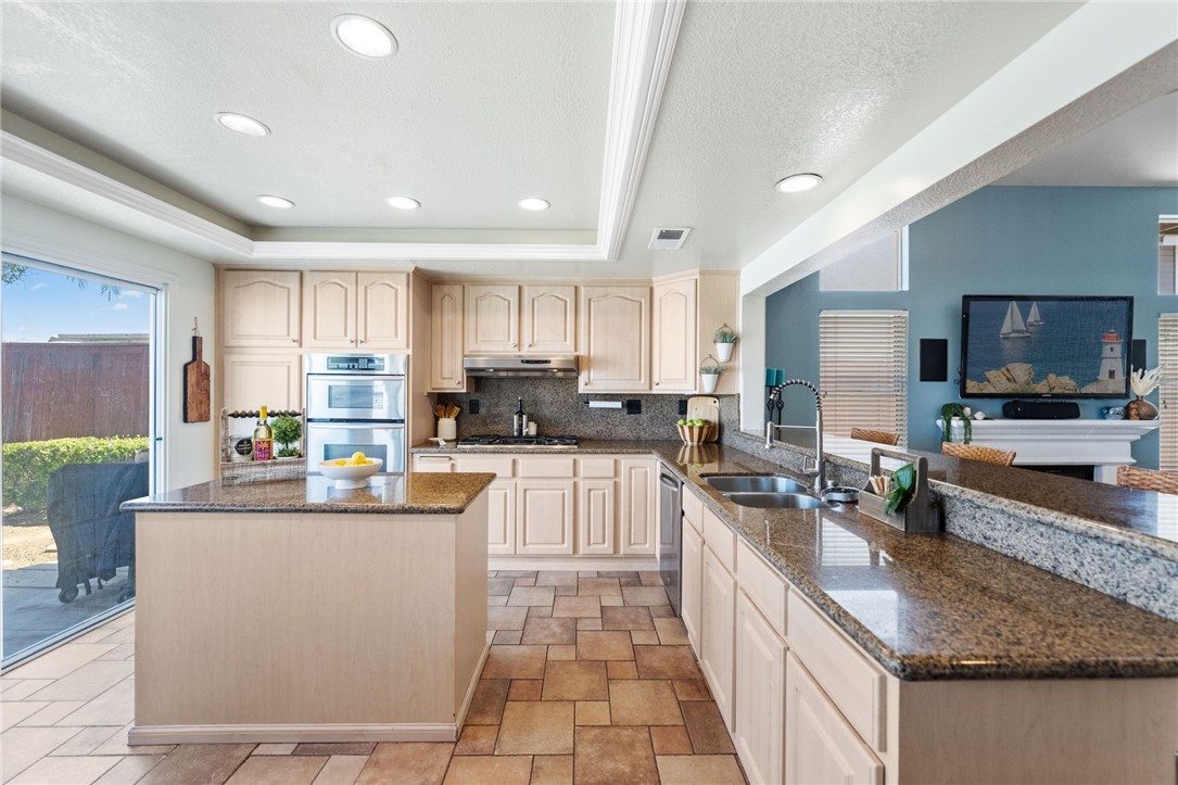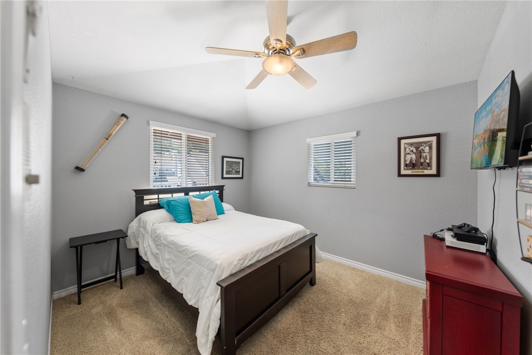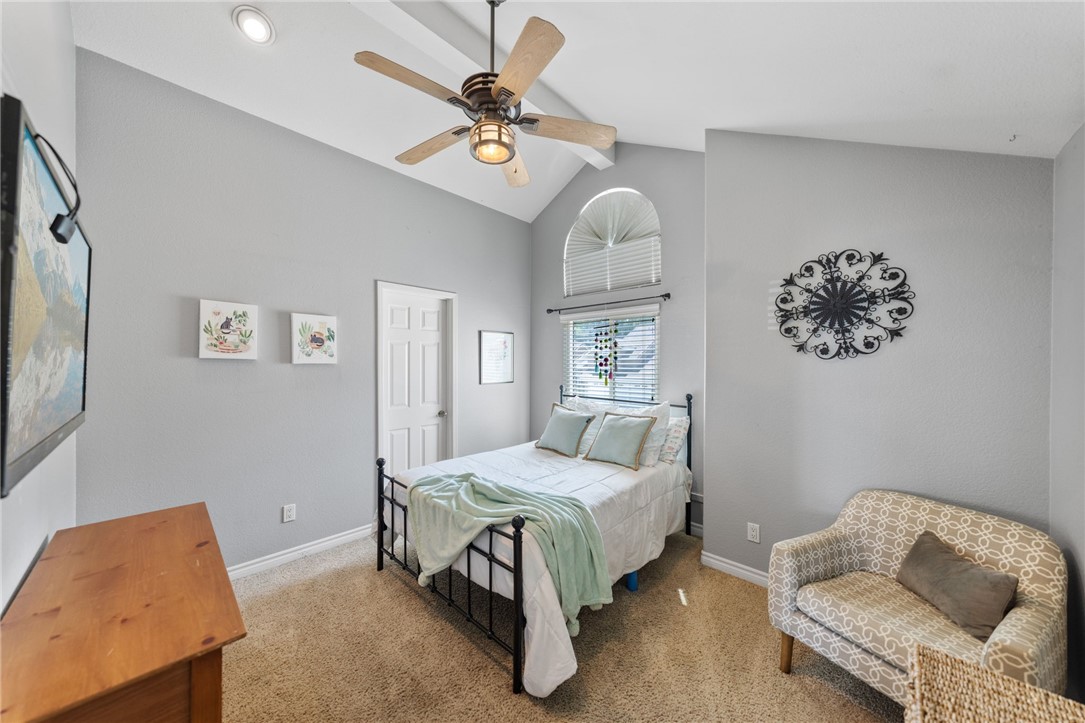 Situated at the end of a tranquil cul-de-sac in the prestigious Sierra Del Oro community near Yorba Linda, this upgraded 4-bedroom and bonus room Spanish-style gem is the epitome of elegance and modern living. As you step through the charming courtyard and enter the double doors, you're welcomed into a spacious foyer that seamlessly flows into formal living and dining areas, where shiplap accent walls and soaring vaulted ceilings create a sense of grandeur. Sunlight pours in through stacked windows, illuminating the Versailles-laid tile floors that span the downstairs, while rich wood floors add warmth to the upper level. The heart of the home is the gourmet kitchen, boasting refaced cabinetry, a central preparation island, and a breakfast bar. Granite countertops with a full backsplash complement the stainless-steel appliances, all brought to life under sleek LED recessed lighting. The adjoining family room is equally impressive, with its expansive layout, vaulted ceilings, and a cozy fireplace, making it the perfect space for gathering with loved ones. Upstairs, the luxurious primary bedroom offers a serene retreat with city-light views, voluminous ceilings, and a relaxing lounge area. Dual walk-in closets provide ample storage, while the spa-like ensuite bath invites you to unwind with a walk-in shower featuring stone walls and dual rain shower heads, a soaking tub, and a vanity adorned with copper sinks and a striking glass tile backsplash. The 5th bedroom, currently modeled as a bonus room, highlights the home's versatility, complete with a custom entertainment center and a built-in office with shelving. The other bedrooms are generously sized, featuring vaulted ceilings and walk-in closets. The backyard is a private oasis with an elevated position that offers views and seclusion, ideal for relaxation and entertainment. Other upgrades include fresh exterior paint, new vinyl fencing, an updated furnace, a water softener, a tankless water heater, a 240 outlet for quicker EV charging, and roll-up garage doors. This remarkable property offers the advantage of no homeowners' association or Mello Roos fees. Its prime location puts you just moments away from a park with a water-splash zone, top-rated schools, and shopping. The home's location is unparalleled, offering seamless accessibility to Orange County's vibrant offerings and to major transportation arteries nearby, including the 91 freeway and Fastrak, 241 toll road, and Metrolink.