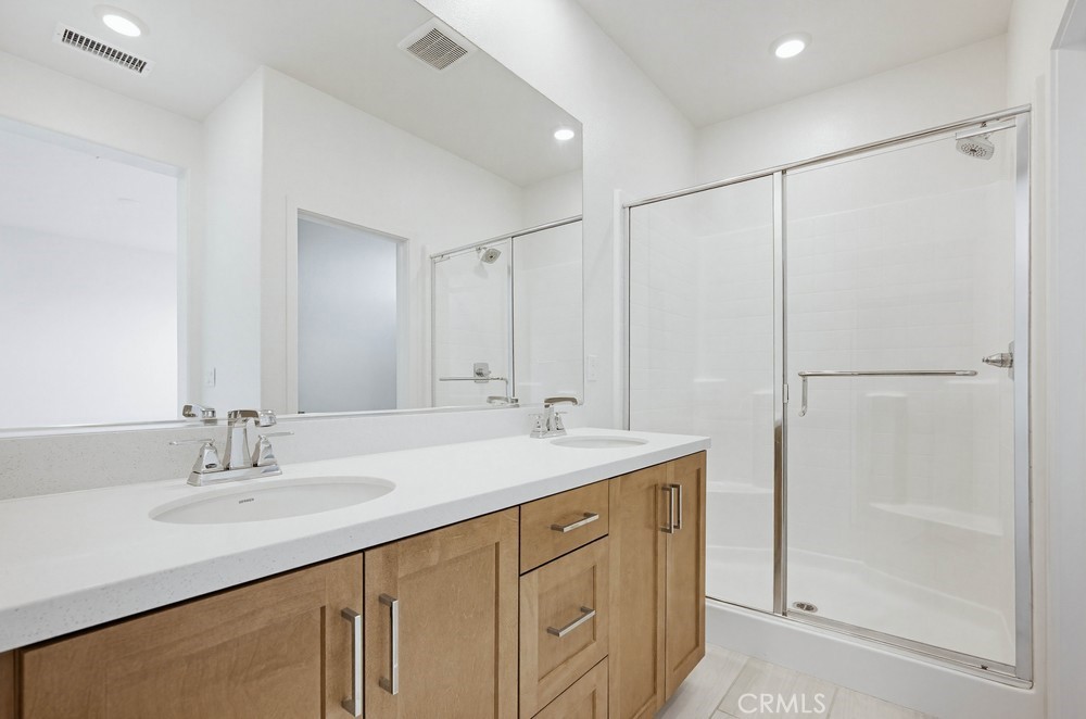 Welcome to refined living in the prestigious, resort-inspired gated community of Bedford in South Corona. Built just two years ago, this move-in-ready residence blends modern elegance with everyday comfort, offering a thoughtfully designed layout and high-end finishes throughout. Step inside to discover luxury plank flooring, upgraded carpet, and sleek flat baseboards that enhance the home's contemporary appeal. The open-concept design creates a seamless flow between the kitchen, dining, and family room--perfect for both relaxed daily living and stylish entertaining. At the heart of the home, the modern kitchen showcases Maple Shaker cabinetry with self-closing features, stunning Quartz countertops, a spacious center island with casual seating, and a full suite of stainless-steel appliances, including a refrigerator--delivering both beauty and functionality. Upstairs, you'll find three generously sized bedrooms, each appointed with plush, upgraded carpeting for added comfort. Two well-appointed bathrooms feature elegant Quartz surfaces, while the convenience of an included stacked washer and dryer adds to the home's turnkey appeal. The two-car garage offers ample space and is equipped with an EV charger, catering to today's modern lifestyle. Living in Bedford means enjoying an exceptional array of resort-style amenities, including multiple pools and spas, a state-of-the-art fitness center, yoga lawns, fire pits, BBQ areas, scenic walking trails, dog parks, playgrounds, and sports courts--creating a true sense of community and leisure. Ideally situated just moments from the Bedford shopping center and within close proximity to The Crossings and Dos Lagos, you'll enjoy easy access to premier shopping, dining, and entertainment. Commuters will appreciate the convenient access to the 91 and 15 freeways, as well as nearby toll roads. Experience elevated living in one of South Corona's most desirable communities--where style, comfort, and convenience come together beautifully.