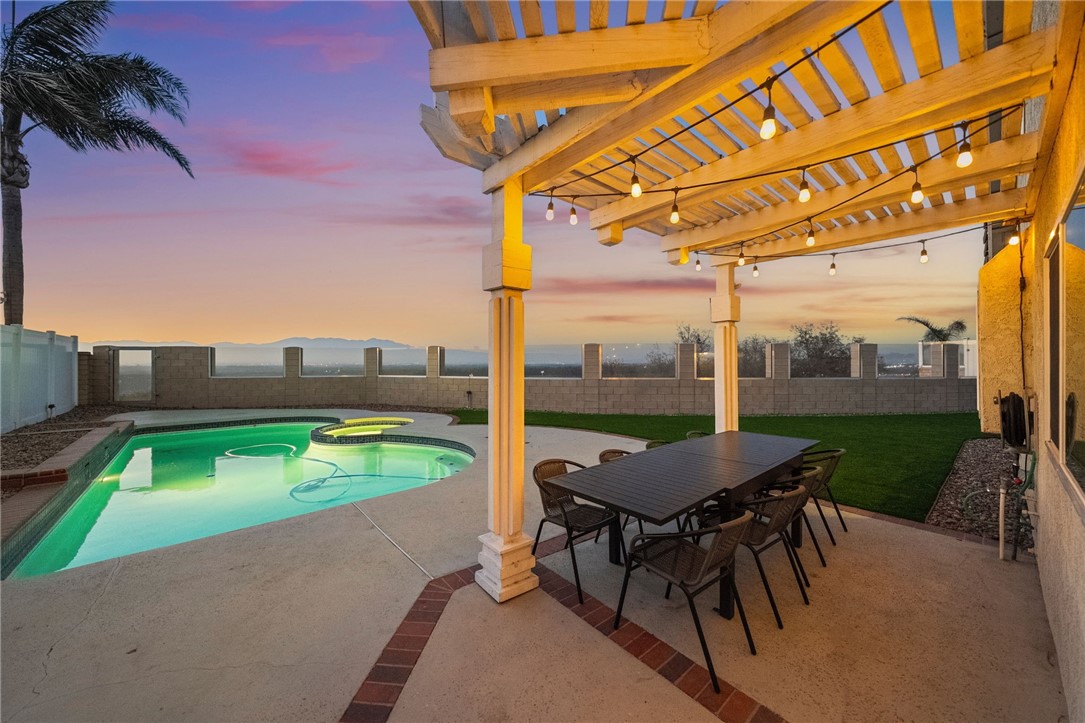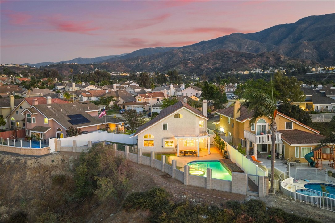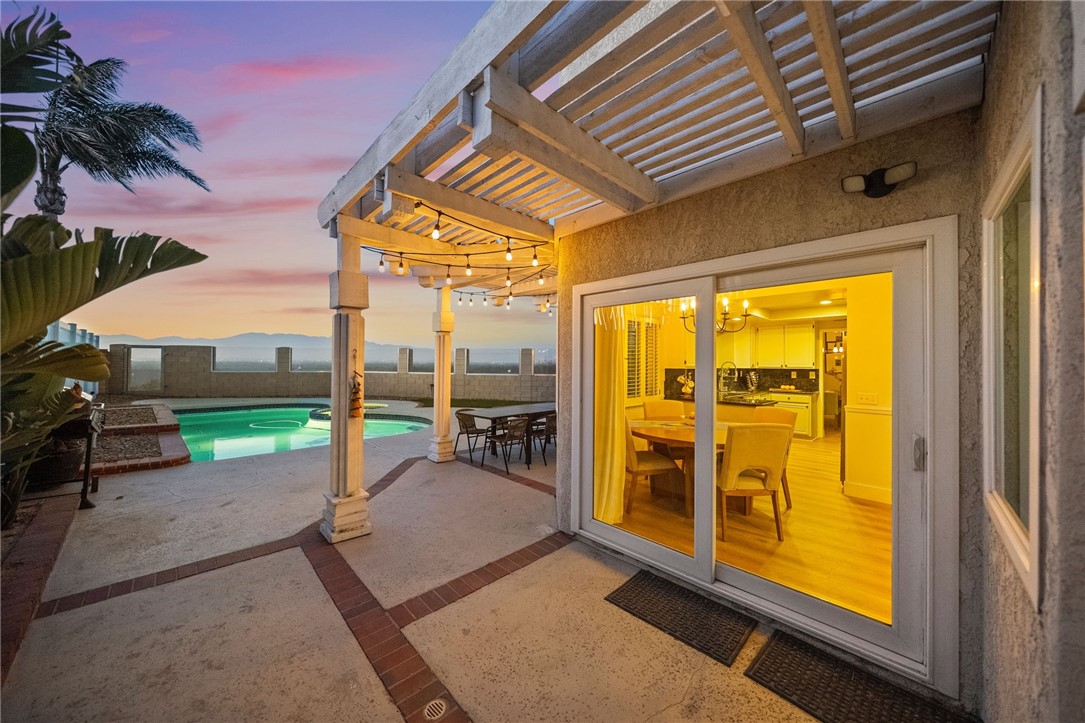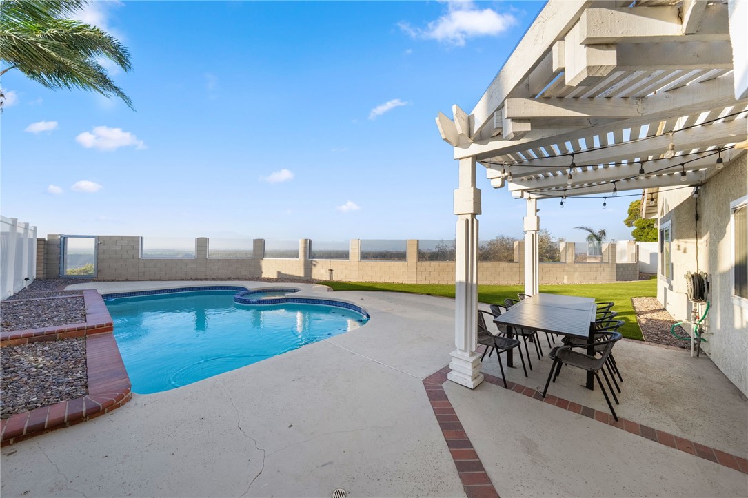 Introducing a captivating oasis of comfortable living, this magnificent 4-bedroom pool home offers an unparalleled residential experience with its completely unobstructed, 180-degree views of the mountains and city lights. Nestled serenely on a bluff, this residence boasts an enviable private location, providing a sense of exclusivity and tranquility. Prepare to be enthralled by the breathtaking vistas that greet you from every corner of this fine property. Through a new glass fence, the sweeping views of Chino Hills State Park, Chino and Cucamonga Valleys, San Gabriel, and San Bernardino Mountains create an ever-changing tapestry of natural beauty. This residence boasts a myriad of top-grade improvements, ensuring a seamless blend of modern comfort and style. High-efficiency dual-pane windows welcome natural light while maintaining energy efficiency, and an upgraded energy-efficient heating and air system ensures year-round comfort. The completely remodeled baths and updated kitchen add a touch of sophistication to the home's overall ambiance. Step through the front door into a voluminous layout adorned with luxury vinyl planks and classic flat baseboards. Towering ceilings and stacked windows blur the boundaries between indoors and outdoors, making the scenic landscape an integral part of the living experience. The sunny kitchen features granite countertops with a full backsplash, stainless steel appliances, and recessed lighting. The family room, adorned with crown molding and wainscoting, exudes charm and comfort, offering a perfect setting to gather around the crackling fireplace during special occasions. The master suite is a haven of privacy and relaxation, positioned strategically to have no houses behind, ensuring a serene escape from the world. The remodeled en-suite bath boasts luxurious features such as a separate tub and shower, wall-to-ceiling Marble, and custom-glass shower walls. The adult-height vanity with Marble countertops adds a touch of opulence to the space. The 2-car garage features top-shelf cabinetry and a versatile room complete with its own air conditioning, seamlessly adapting to your lifestyle needs, whether it be an office, gym, or hobby room. Venture outside and be enchanted by the privacy of the backyard, offering a harmonious blend of nature and entertainment. With its wrap-around patio, expansive decks, and new synthetic grass, this outdoor space beckons relaxation and joyful gatherings.
