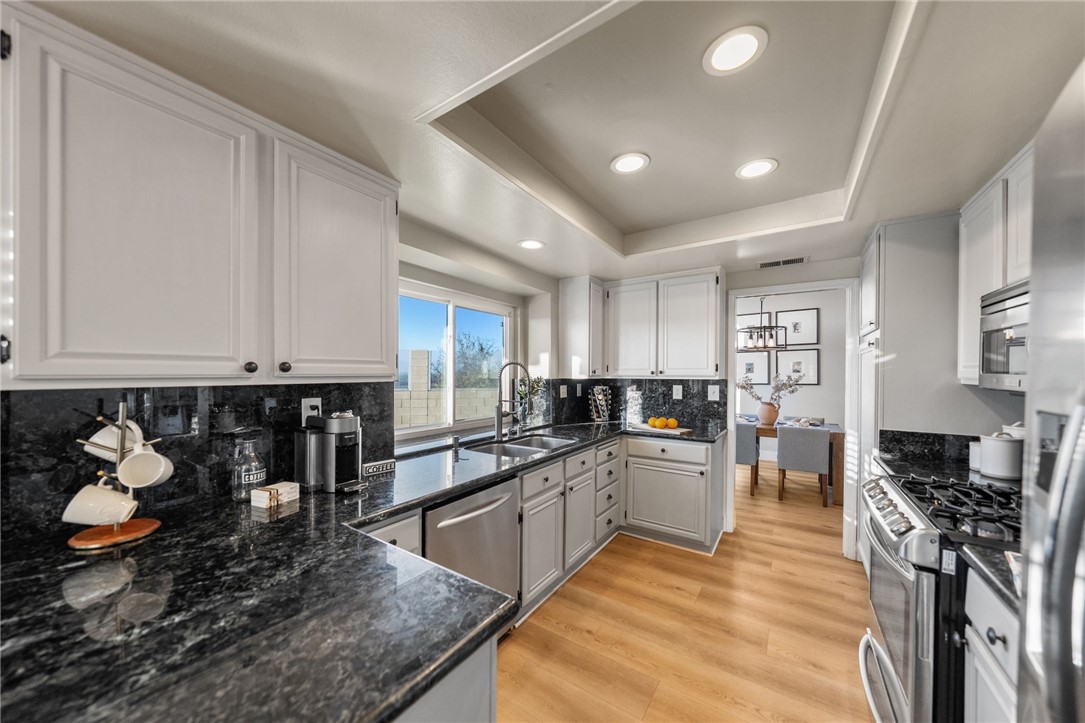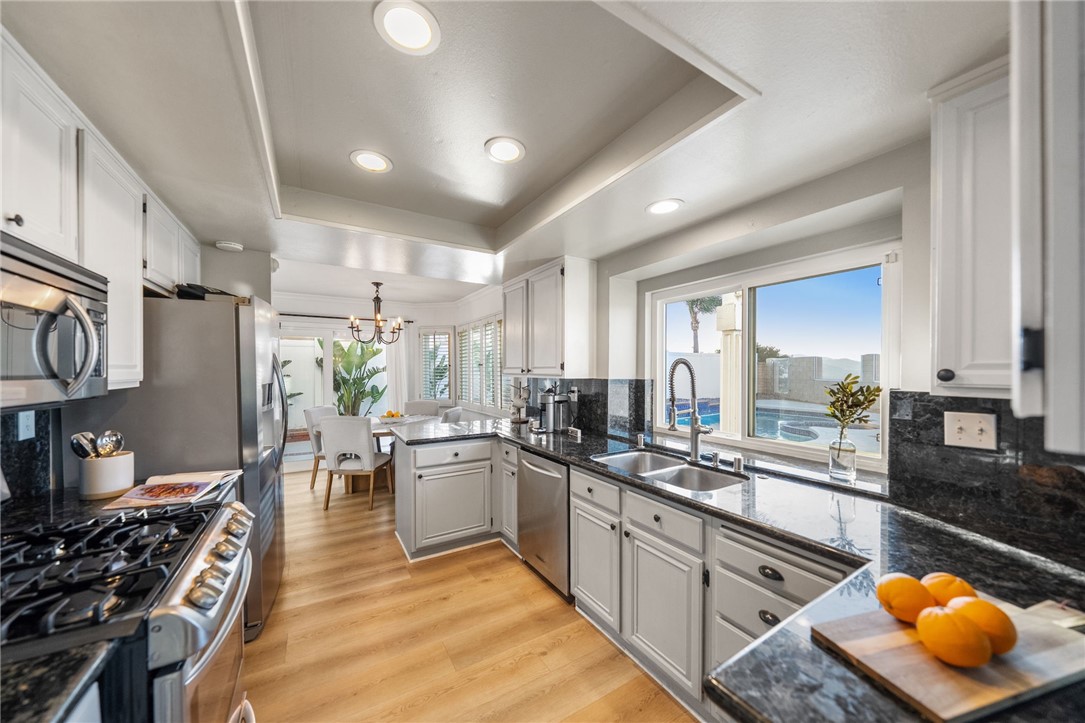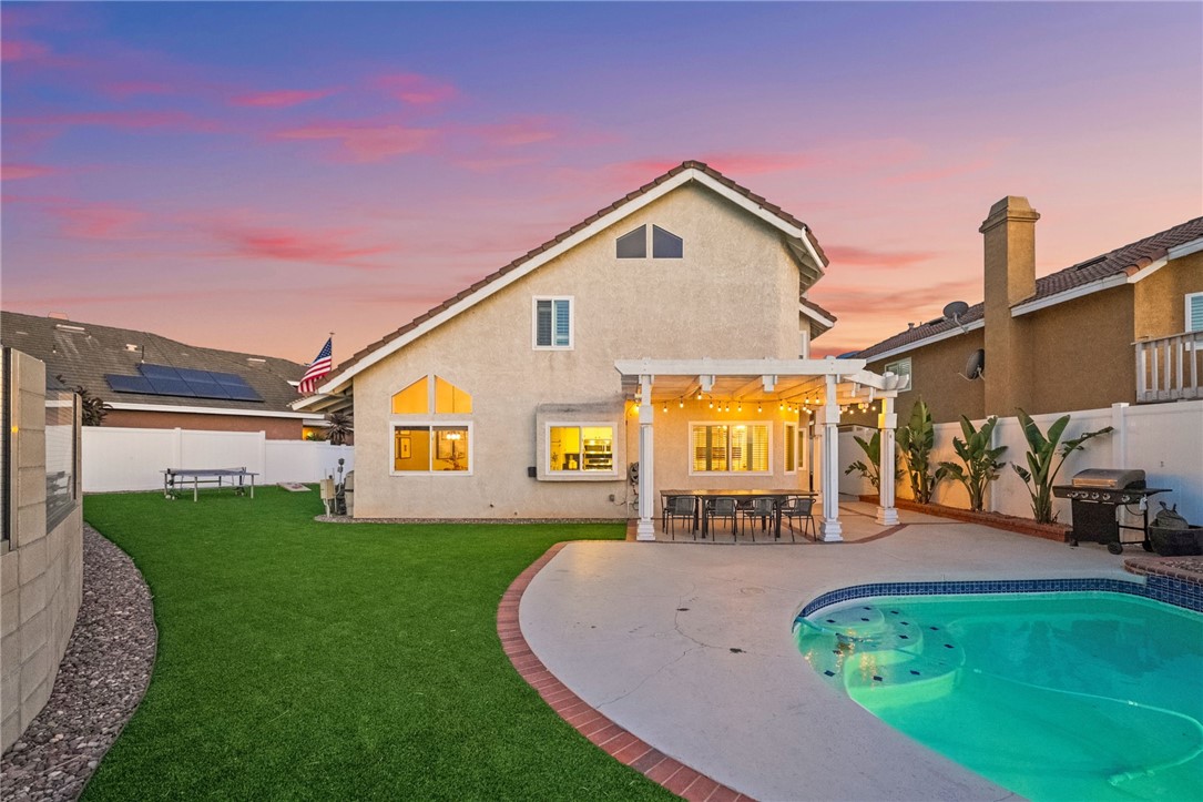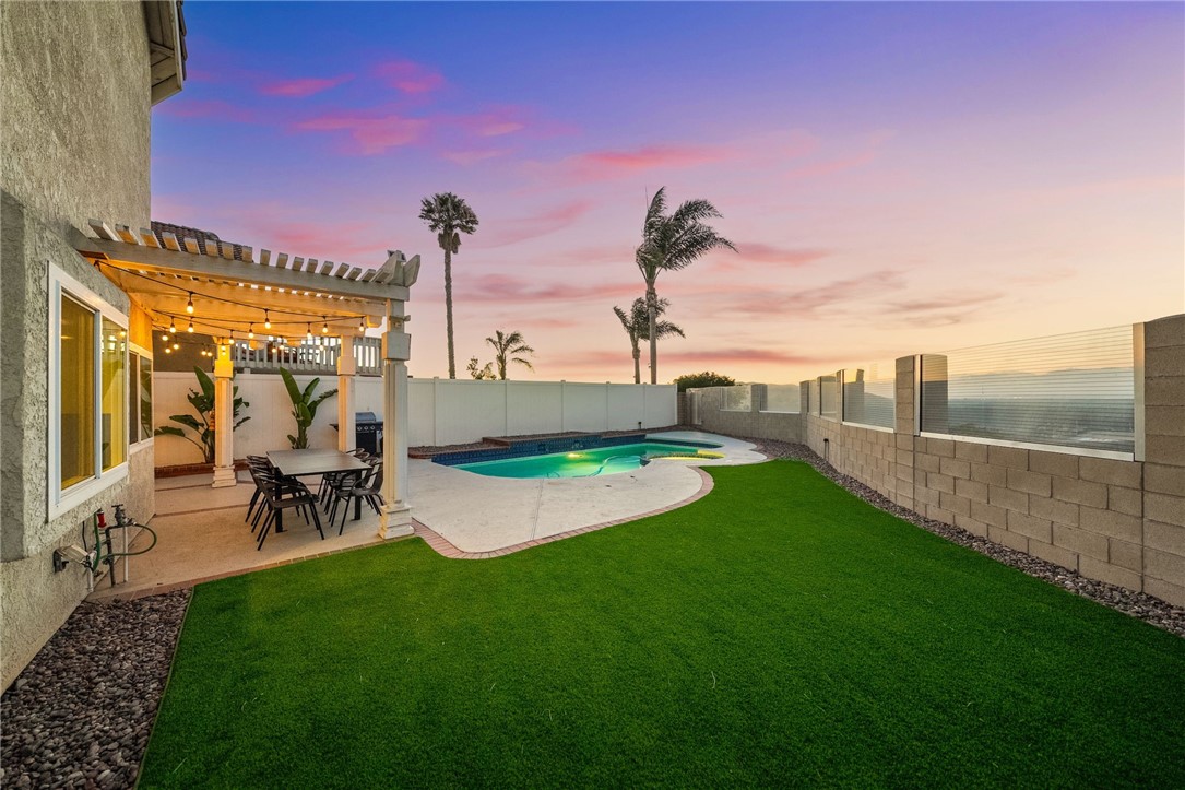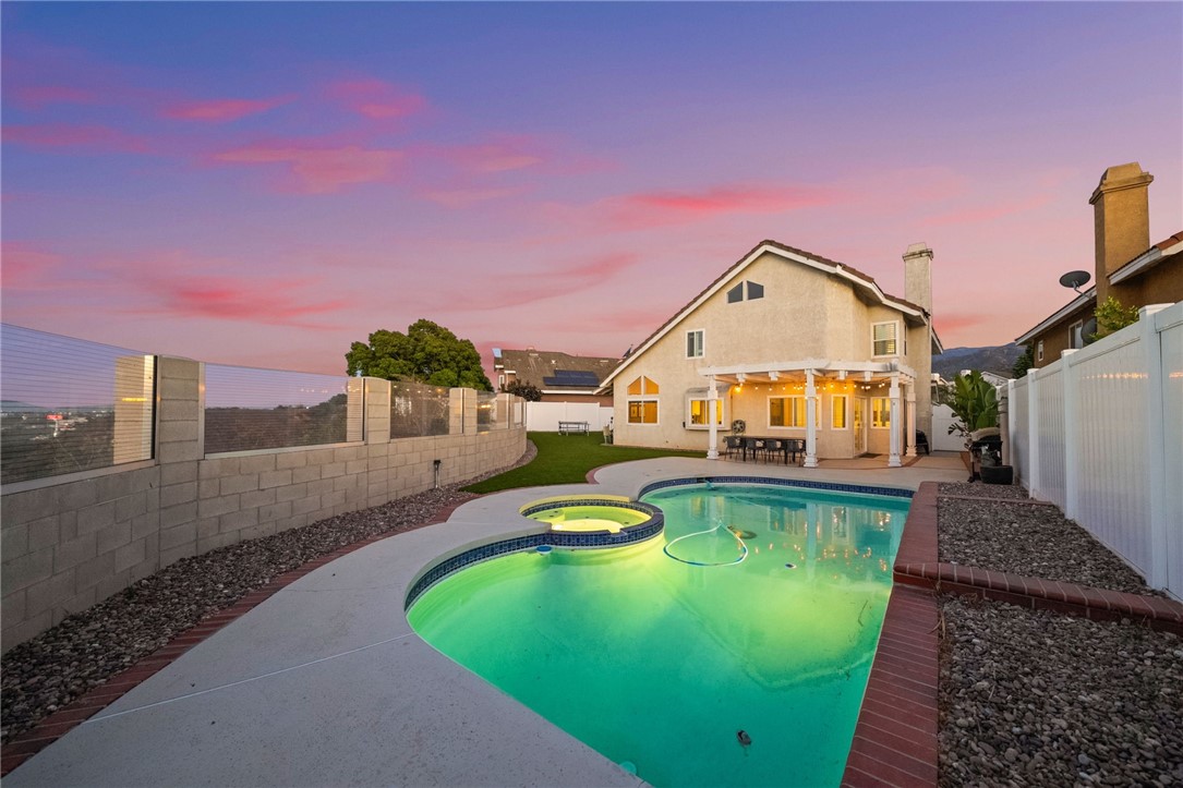 Introducing a captivating oasis of comfortable living, this magnificent 4-bedroom pool home offers an unparalleled residential experience with its completely unobstructed, 180-degree views of the mountains and city lights. Nestled serenely on a bluff, this residence boasts an enviable private location, providing a sense of exclusivity and tranquility. Prepare to be enthralled by the breathtaking vistas that greet you from every corner of this fine property. Through a new glass fence, the sweeping views of Chino Hills State Park, Chino and Cucamonga Valleys, San Gabriel, and San Bernardino Mountains create an ever-changing tapestry of natural beauty. This residence boasts a myriad of top-grade improvements, ensuring a seamless blend of modern comfort and style. High-efficiency dual-pane windows welcome natural light while maintaining energy efficiency, and an upgraded energy-efficient heating and air system ensures year-round comfort. The completely remodeled baths and updated kitchen add a touch of sophistication to the home's overall ambiance. Step through the front door into a voluminous layout adorned with luxury vinyl planks and classic flat baseboards. Towering ceilings and stacked windows blur the boundaries between indoors and outdoors, making the scenic landscape an integral part of the living experience. The sunny kitchen features granite countertops with a full backsplash, stainless steel appliances, and recessed lighting. The family room, adorned with crown molding and wainscoting, exudes charm and comfort, offering a perfect setting to gather around the crackling fireplace during special occasions. The master suite is a haven of privacy and relaxation, positioned strategically to have no houses behind, ensuring a serene escape from the world. The remodeled en-suite bath boasts luxurious features such as a separate tub and shower, wall-to-ceiling Marble, and custom-glass shower walls. The adult-height vanity with Marble countertops adds a touch of opulence to the space. The 2-car garage features top-shelf cabinetry and a versatile room complete with its own air conditioning, seamlessly adapting to your lifestyle needs, whether it be an office, gym, or hobby room. Venture outside and be enchanted by the privacy of the backyard, offering a harmonious blend of nature and entertainment. With its wrap-around patio, expansive decks, and new synthetic grass, this outdoor space beckons relaxation and joyful gatherings.